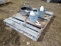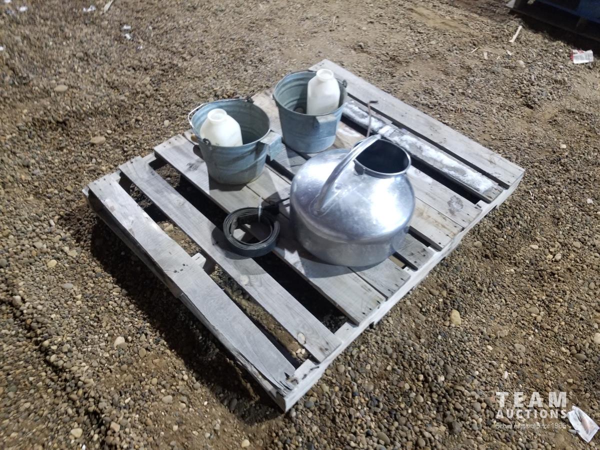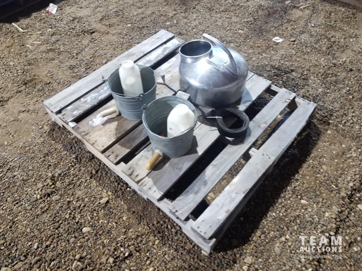 Milk bucket with strap for milk machine, (2) buckets, (2) calf feeding bottles