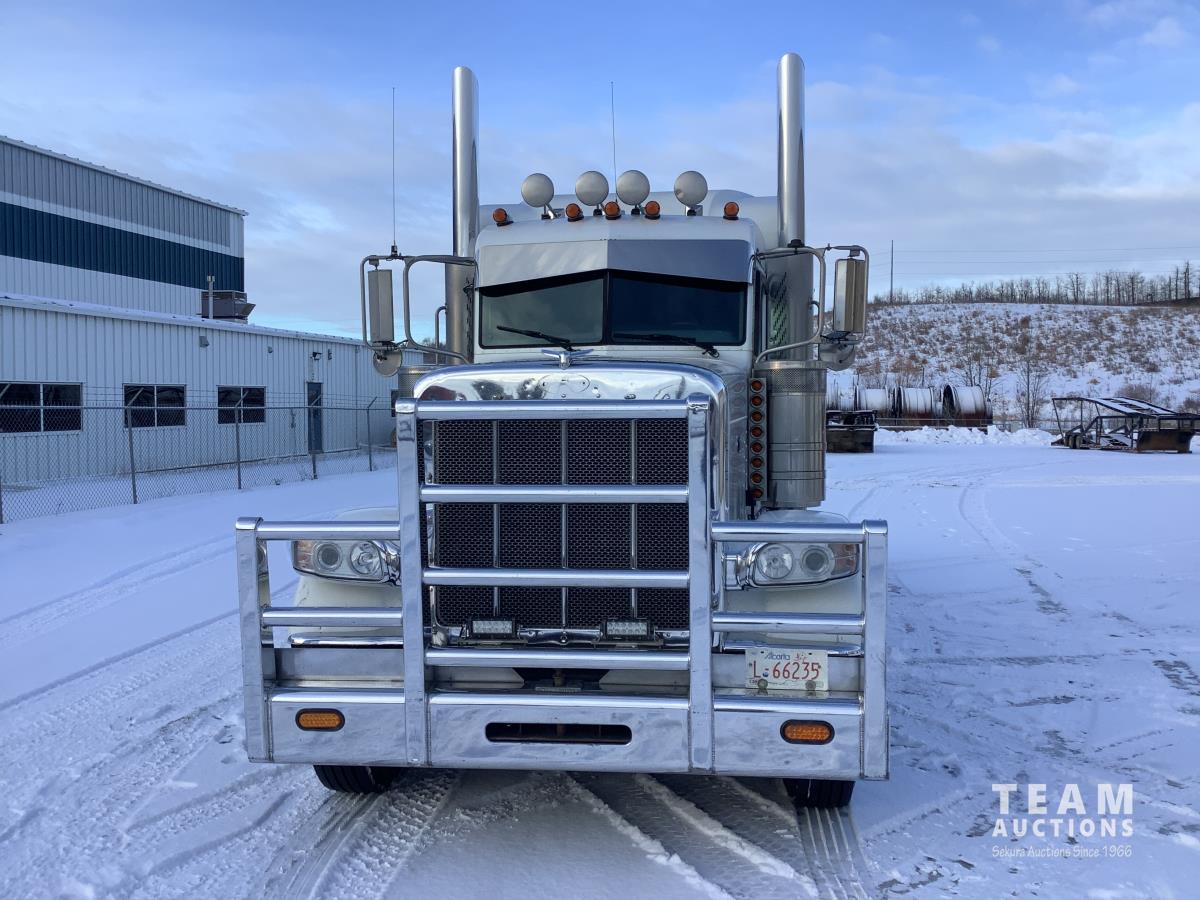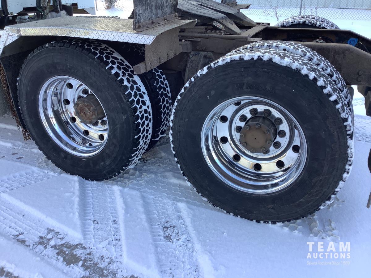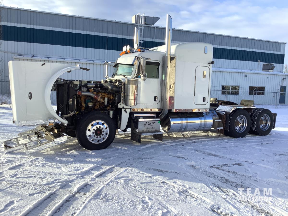 Caterpillar C-15 550 HP engine, emissions deleted, Eaton Fuller 18 speed manual transmission, high rise 72 inch sleeper, fridge, air ride seats, air suspension, 12,000 lb front axle, 46,000 lb rear axles, full lockers, Webasto heater, front moose bumper, side step tool box, rear fenders, all aluminum wheels, 11R24.5 rear tires