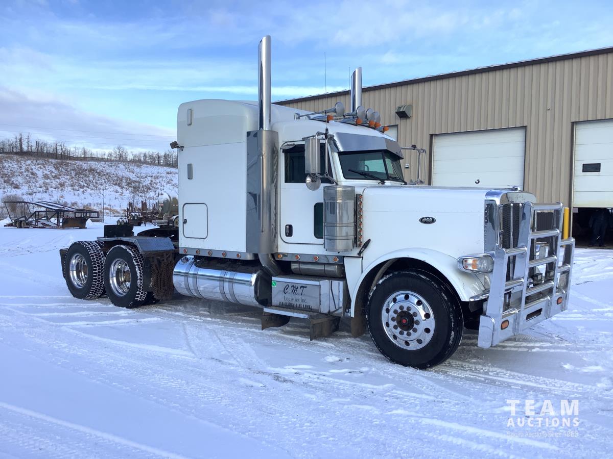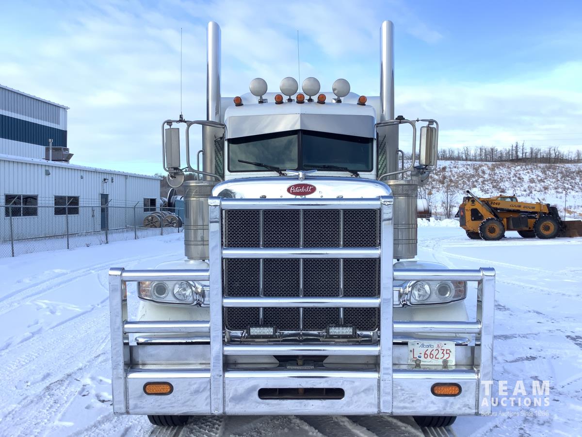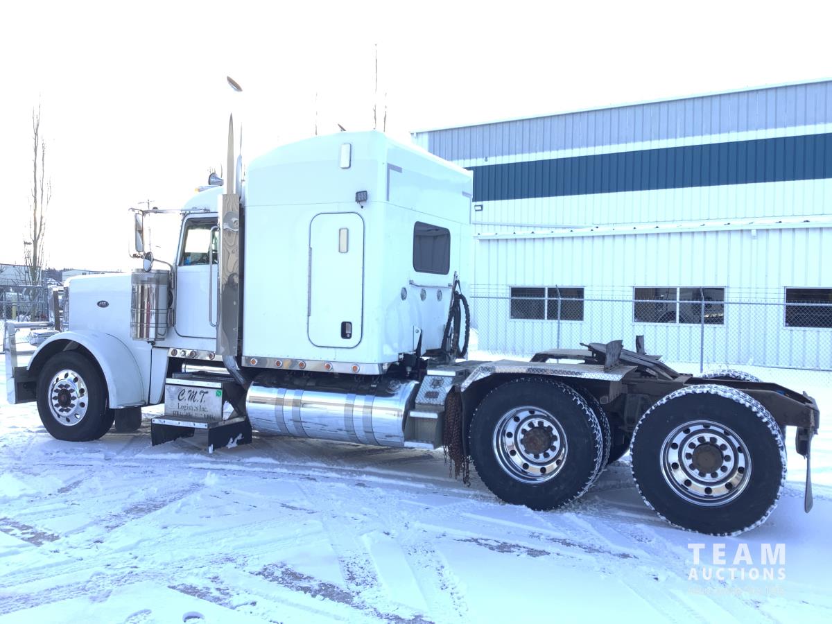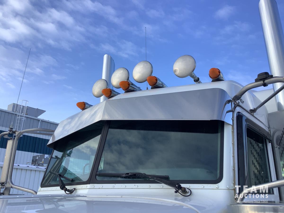 Caterpillar C-15 550 HP engine, emissions deleted, Eaton Fuller 18 speed manual transmission, high rise 72 inch sleeper, fridge, air ride seats, air suspension, 12,000 lb front axle, 46,000 lb rear axles, full lockers, Webasto heater, front moose bumper, side step tool box, rear fenders, all aluminum wheels, 11R24.5 rear tires