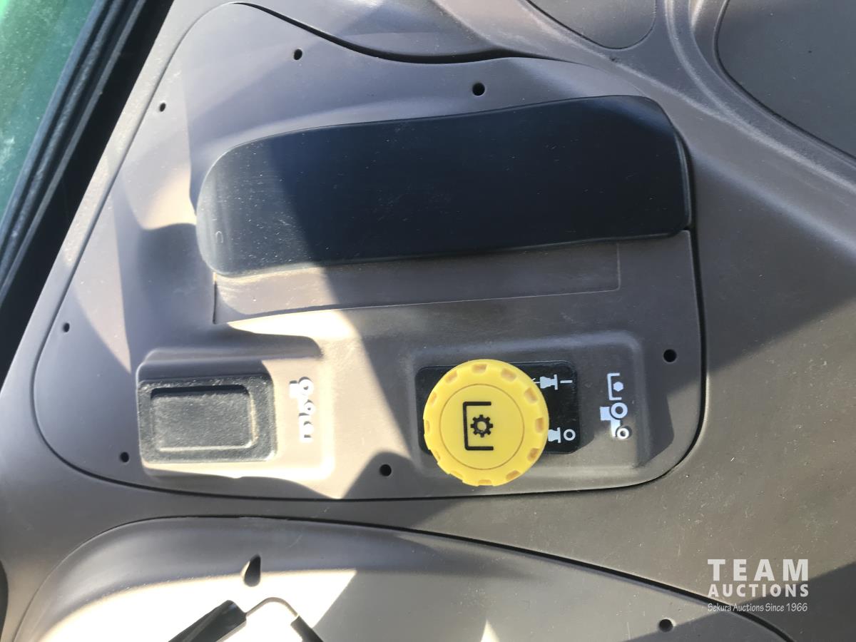 John Deere H240 loader, Q/A, bucket, 85 HP, engine, 70 PTO HP, null, left hand reverser, joystick, A/C, radio, buddy seat, 3 point hitch, 2 rear hydraulic outlets, 18.40/30 rear tires, 12 speed partially synchronized transmission, wet clutch, blue tooth, (2) power points, optional 540E PTO, remote 3 PT hitch switch