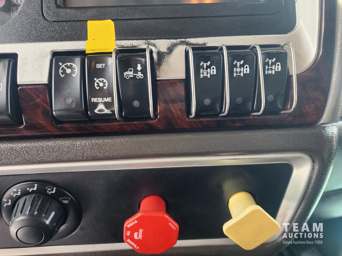 Paccar MX13 12.9 L 500 HP Webasto diesel engine heater, positive air shutoff, emissions deleted, Eaton Fuller 18 speed manual transmission, diesel cab heater, 62 inch sleeper, A/C, leather interior, air suspension, 13,200 lb front axle, 46,000 lb rear axles, full lockers, 4:10 ratio, 228 inch WB, 2 line wet kit (need to connect lines), ACE cabinet headache rack with lights, Step toolbox, chain hangers, Led headlights and work lights, Line-x Moose bumper and steps, heated/power moto mirrors, full gauges with navplus, 11R24.5 rear tires