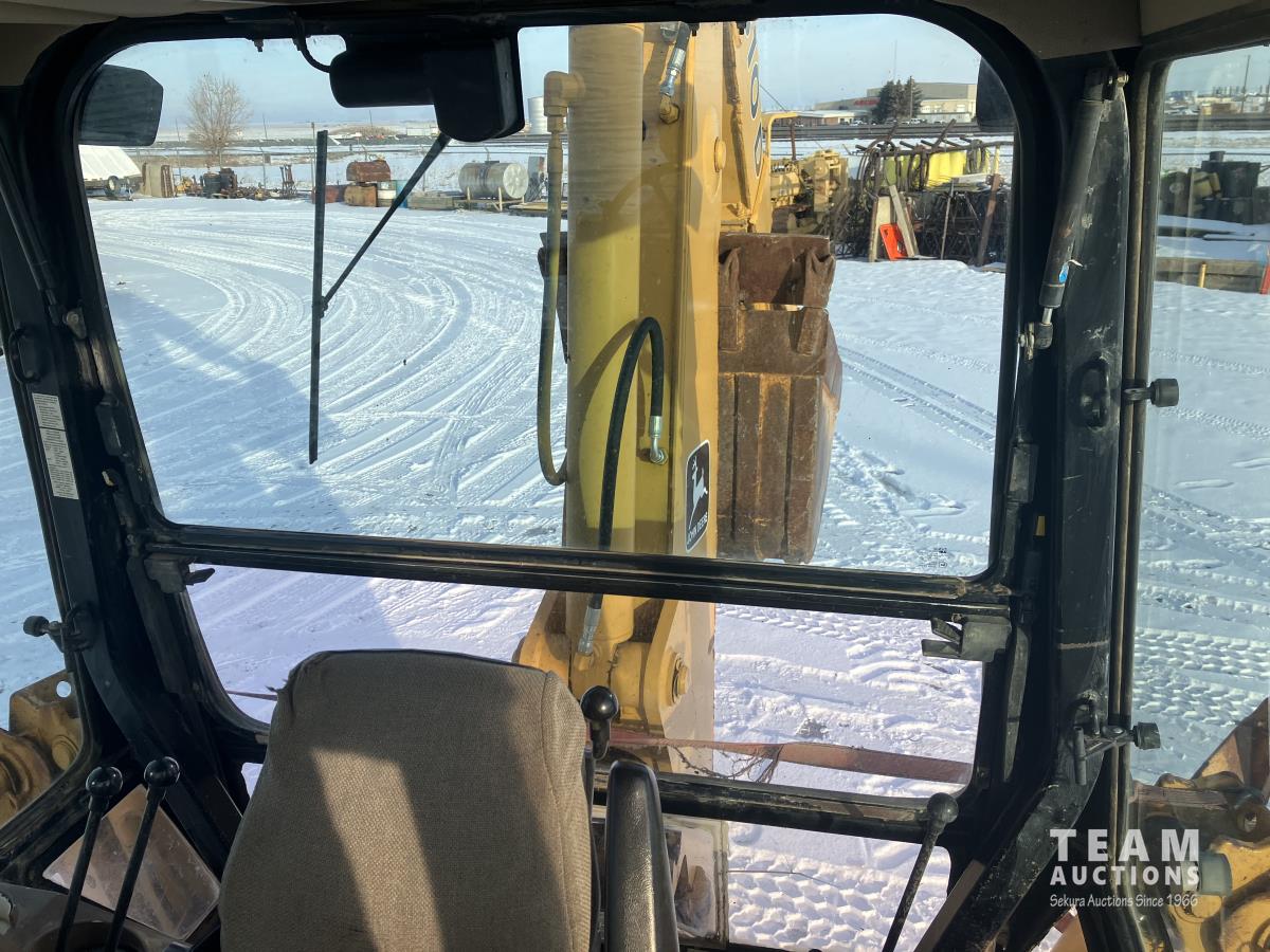 91 inch loader bucket, enclosed cab, extendable stick, 24 inch cleanup bucket, 14-17.5 front, 21L-24 rear