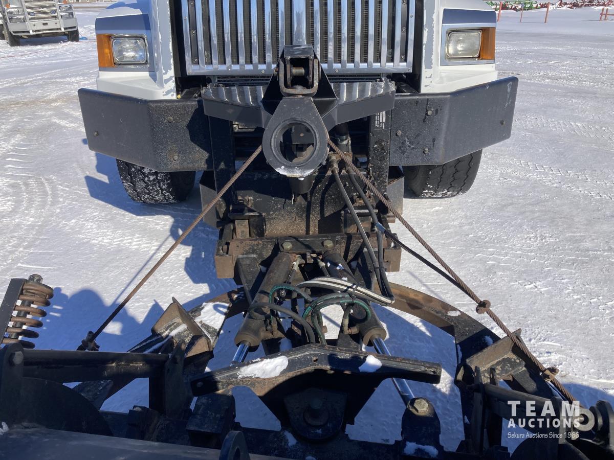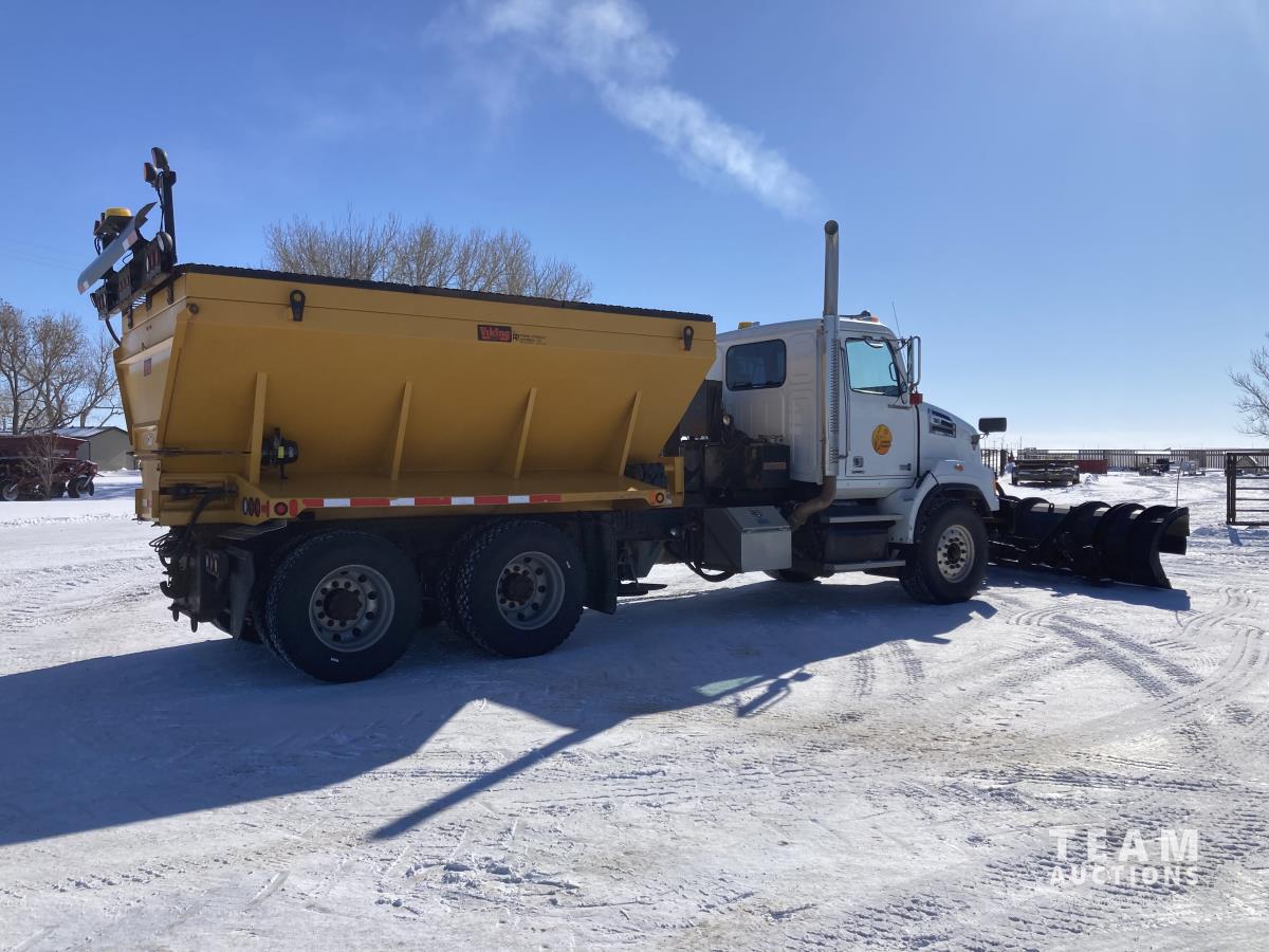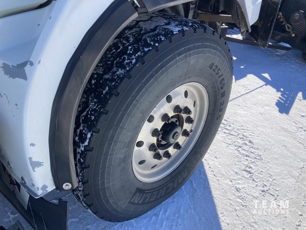 Detroit DD13 12.8 L 500 HP diesel engine, DEF required, Allison automatic transmission, Viking VCL 36-12-45C 12 FT plow S/N 00582, Viking VBS-14 14 FT Sander box S/N 00096, Rexroth electronic spreader controls, front PTO driven hydraulics, single spinner, front plow mount, plumbed for pup, air suspension, 20,000 lb front axle, 46,000 lb rear axles, diff lock, 224 inch WB, all aluminum wheels, 425/65R22.5 front tires, 11R22.5 rear tires