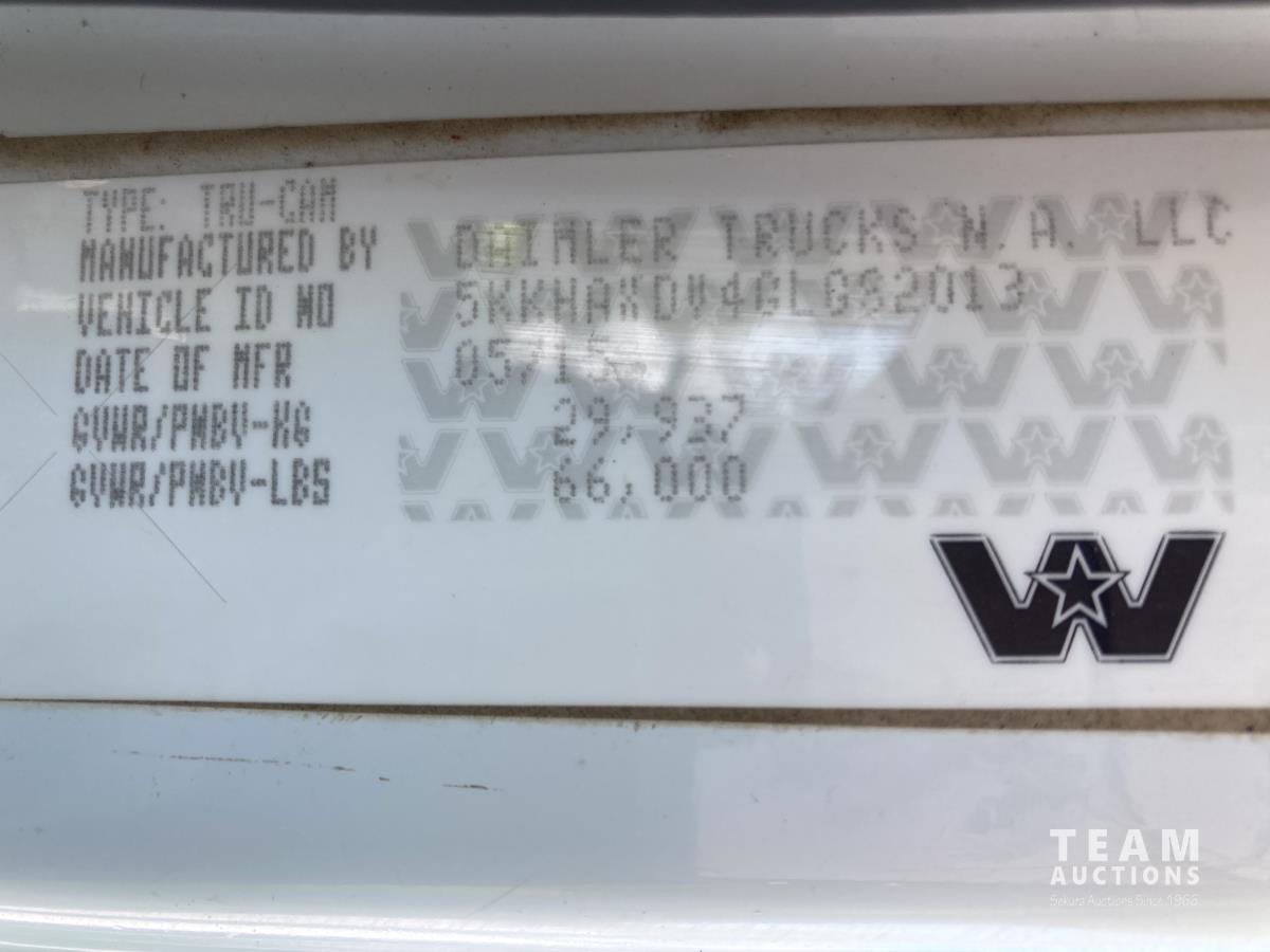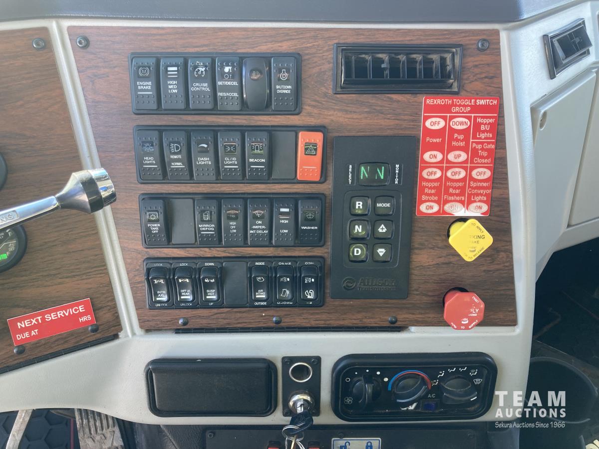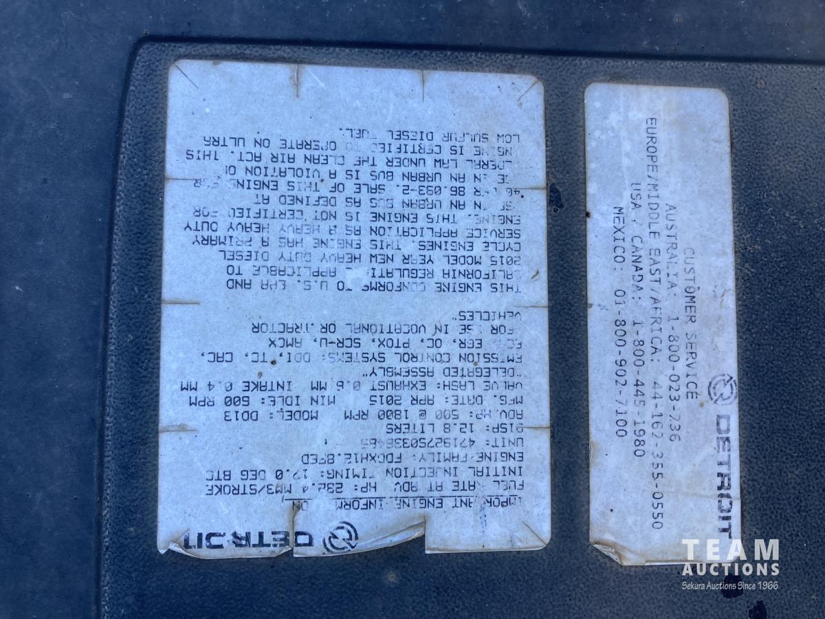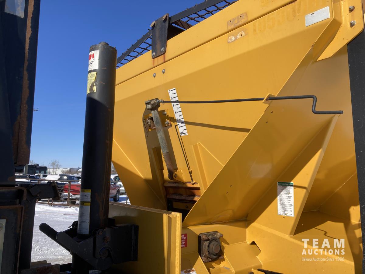 Detroit DD13 12.8 L 500 HP diesel engine, DEF required, Allison automatic transmission, Viking VCL 36-12-45C 12 FT plow S/N 00582, Viking VBS-14 14 FT Sander box S/N 00096, Rexroth electronic spreader controls, front PTO driven hydraulics, single spinner, front plow mount, plumbed for pup, air suspension, 20,000 lb front axle, 46,000 lb rear axles, diff lock, 224 inch WB, all aluminum wheels, 425/65R22.5 front tires, 11R22.5 rear tires