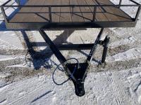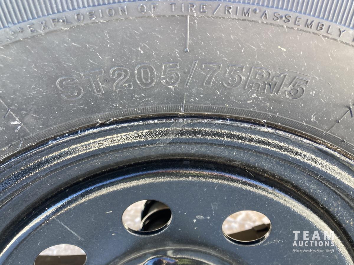 3500 lb EZ Lube axle, 10 Ply ST205/75 R15 Tires on 15X5 Black Rims, jack 2,500 lb, 4 inch channel frame with 3 inch channel cross members, 4 ft mesh endgate, D. O. T approved LED lights, RV trailer plug, 2 inch hitch, 2X8 fir plank deck, HD safety chains, 14GA checker plate fenders, rated flexibility -45 to -65 wiring harness, sandblasted, primed with epoxy primer painted with polyurethane paint, GVWR 2,998 lb, payload capacity 1,840 lb.