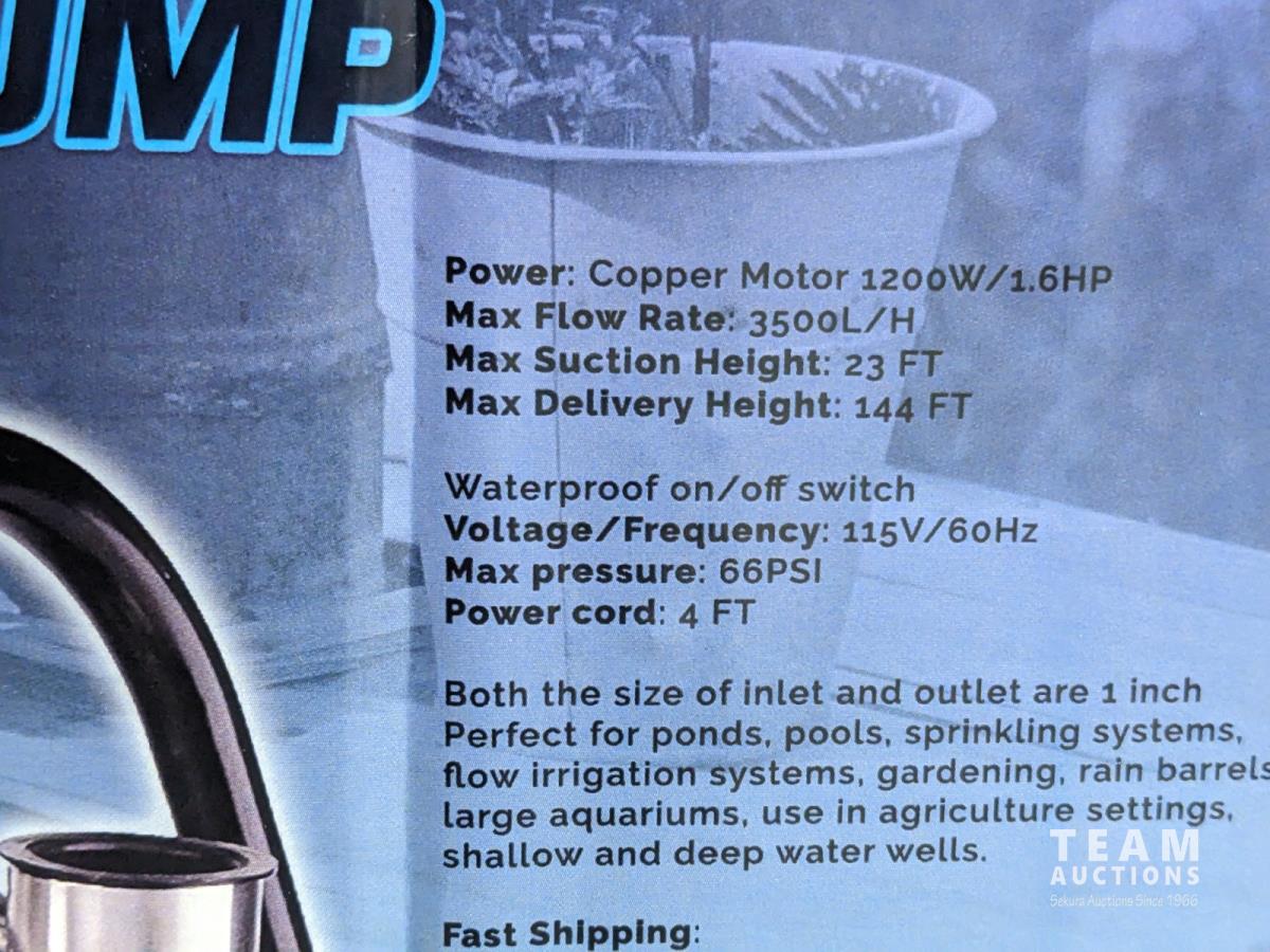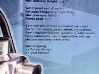 1.6HP shallow well portable pump, max flow rate 3500L/H, 115v