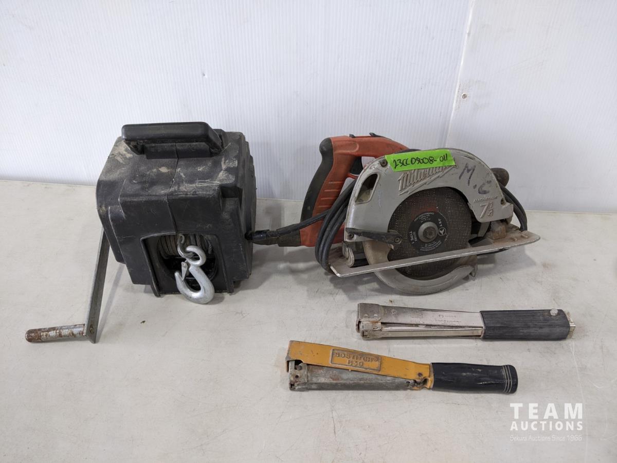 1470 (2) Hammer Tacker Staplers, 7-1/4 Inch Milwaukee Circular Saw and Manual Winch