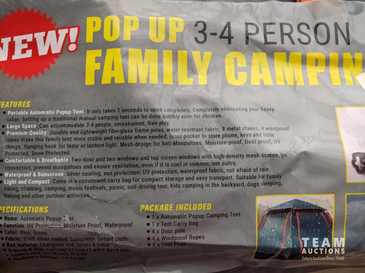 1817 3-4 Person Pop-Up Tent (Unused)