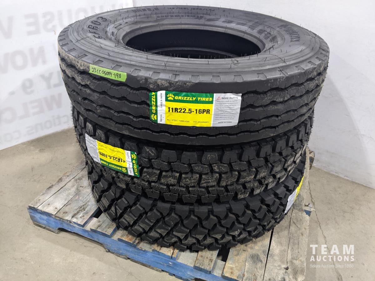 1203 (3) Grizzly 11R22.5-16Pr Tires (Unused)
