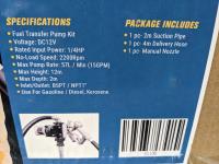 12v, 1/4 HP, 57 liters per minute, 4 meter delivery hose, manual nozzle