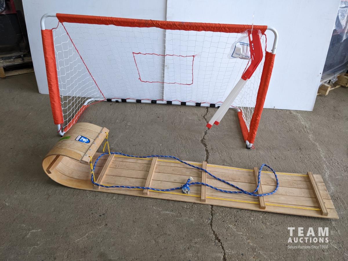 1107 Mini Hockey Net and 5 Ft Wooden Toboggan