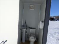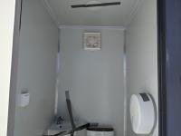 Has sink, toilet, toilet paper holder, exhaust fan, light with switch, has power hookup