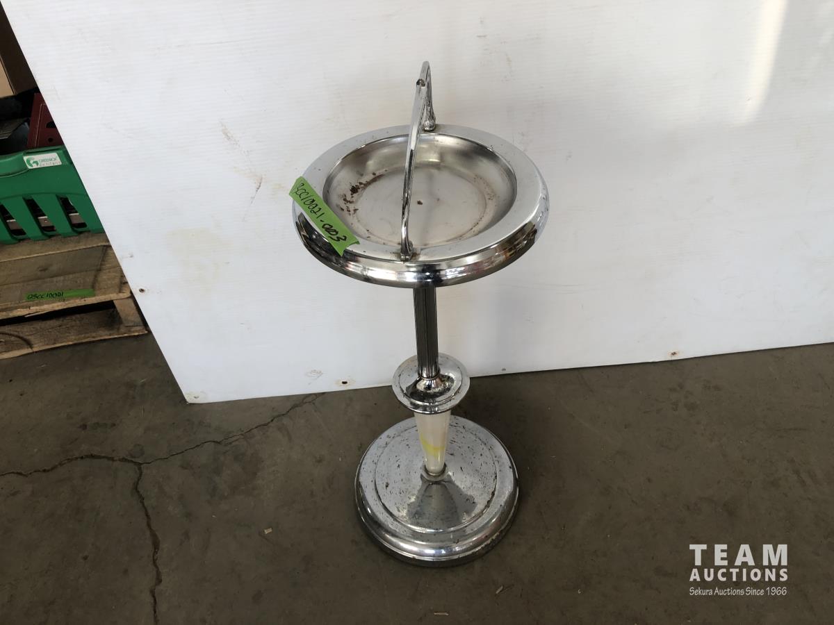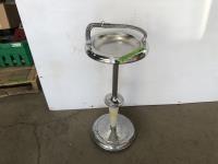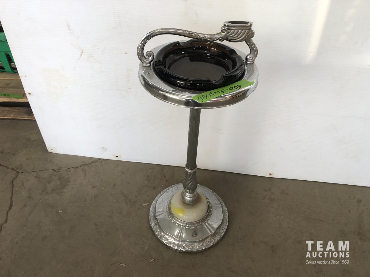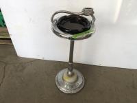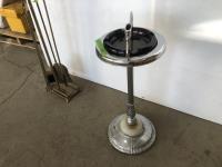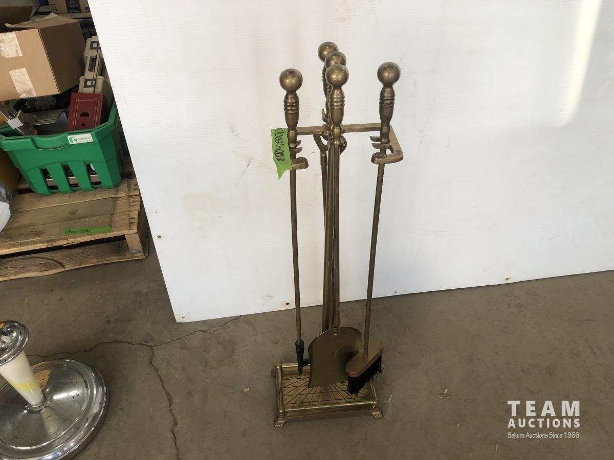 (2) Stand up vintage ashtrays and (1) bronze fire place poker kit and stand