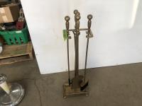(2) Stand up vintage ashtrays and (1) bronze fire place poker kit and stand