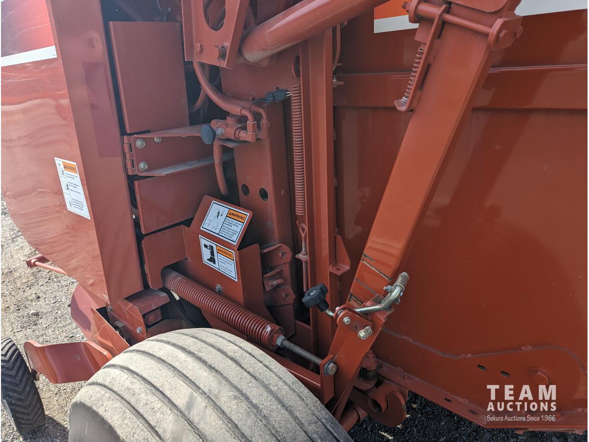 540 PTO, 72 inch pickup, (2) gauge wheels, 5x6 ft bale size, twine tie, monitor, kicker, hydraulic tension, light kit, 5,795 bale count, 14L-16.1SL tires