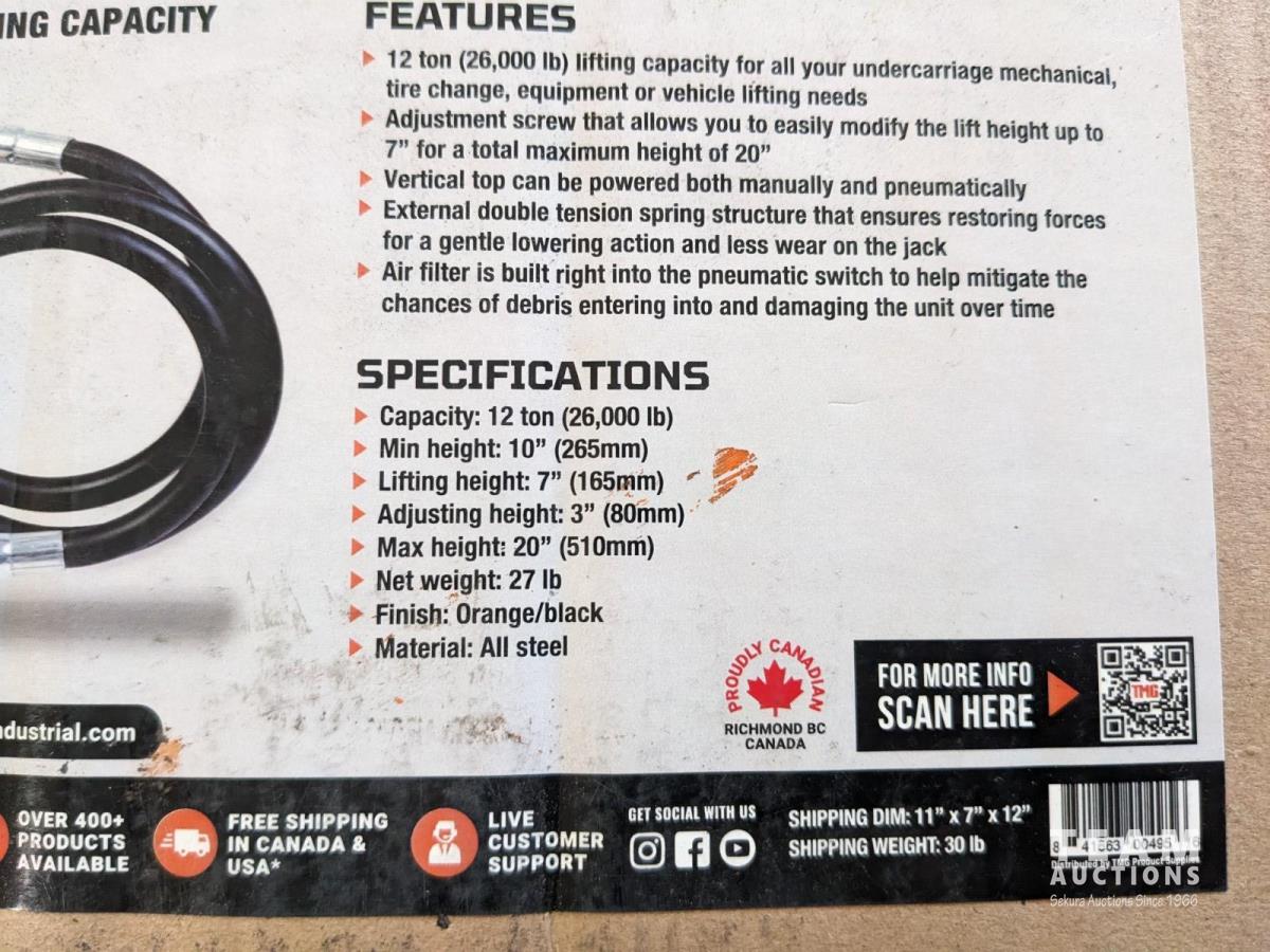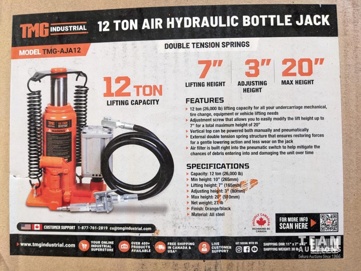 78 TMG Industrial AJA12 12 Ton Air Hydraulic Bottle Jack (Unused)