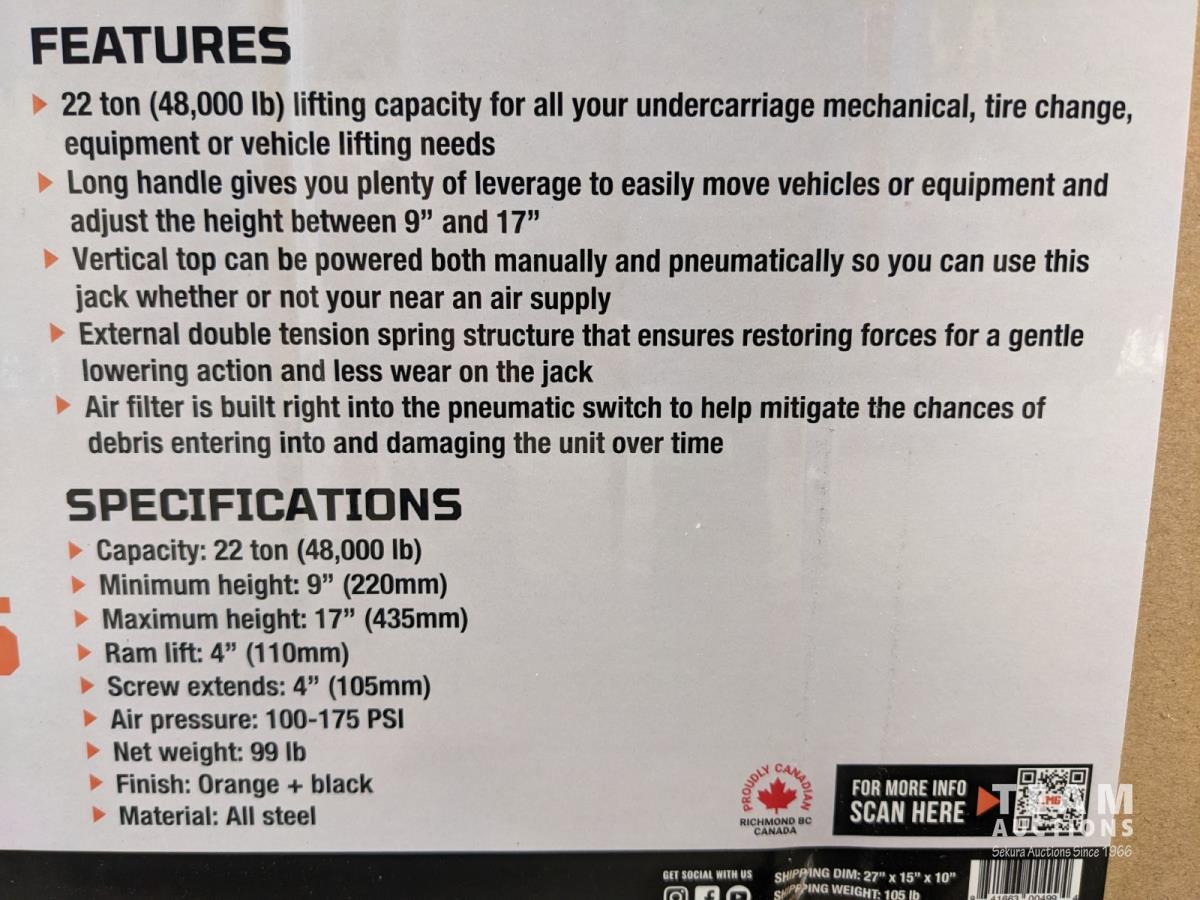 75 TMG Industrial AJX22 22 Ton Professional Air Hydraulic Axle Jack (Unused)