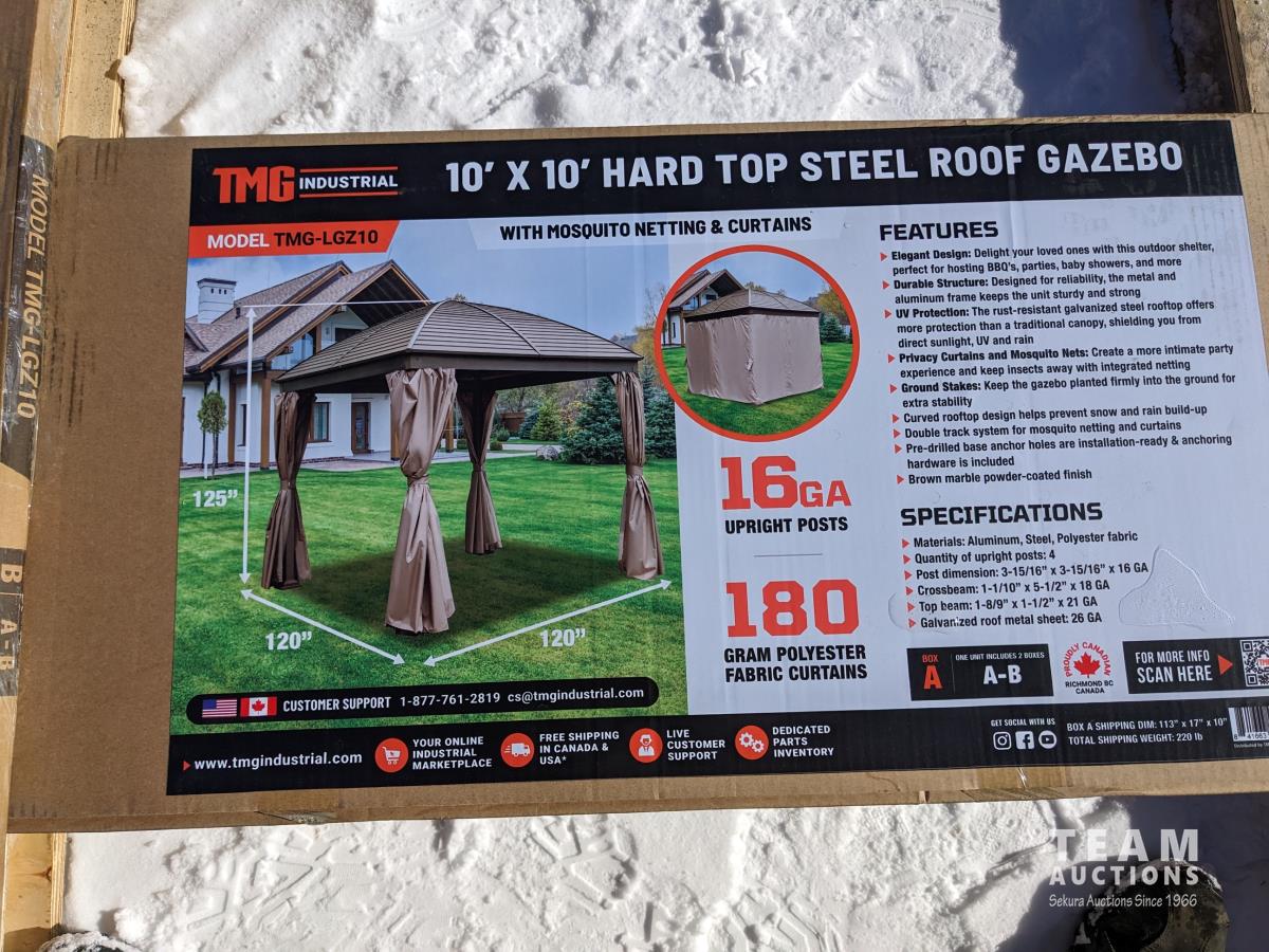 216 TMG Industrial LGZ10 10 Ft X 10 Ft Hardtop Curved Steel Roof Patio Gazebo (Unused)