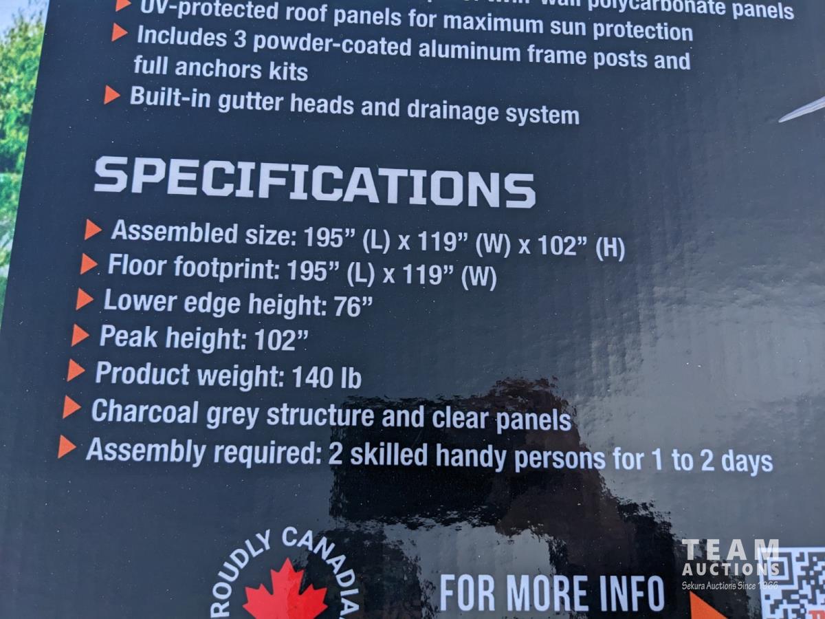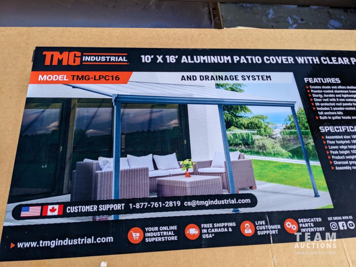 219 TMG Industrial LPC16 Aluminum Patio Cover 10 Ft X 16 Ft (Unused)