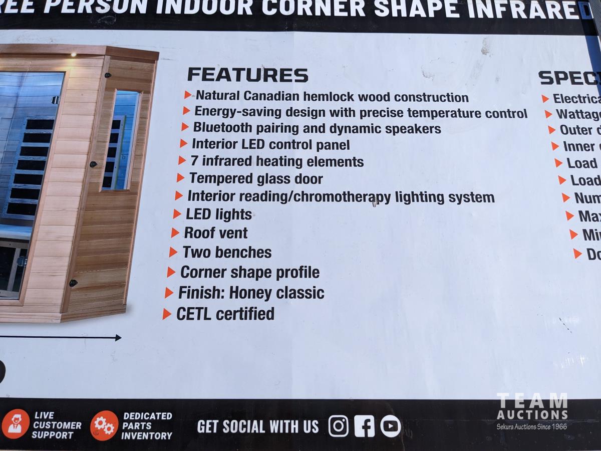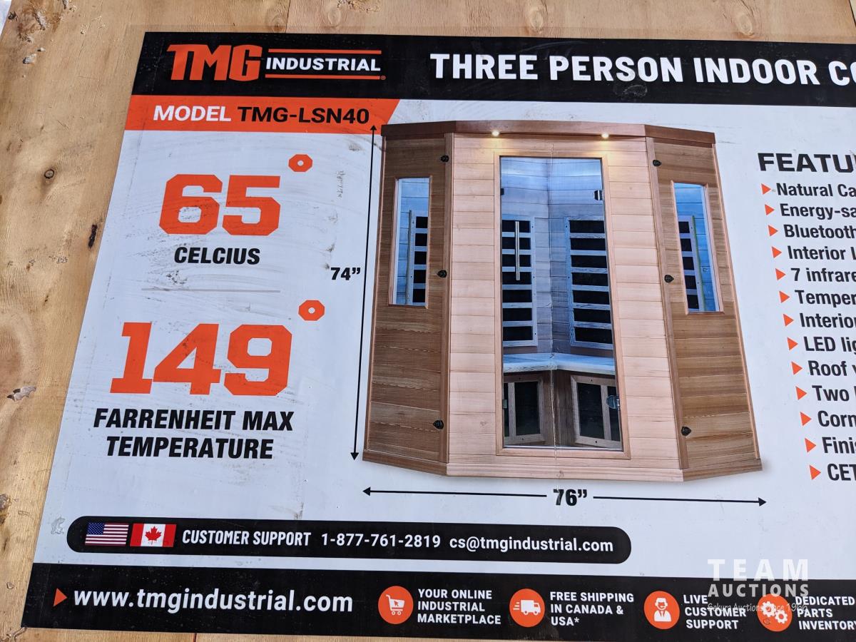 224 TMG Industrial LSN40 Three Person Corner Indoor Infrared Sauna Room (Unused)