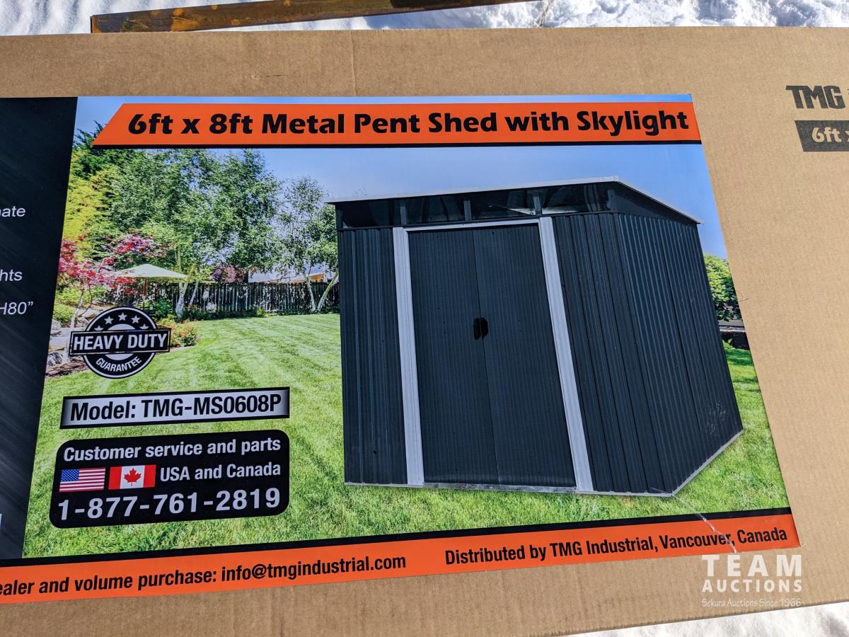 186 TMG Industrial MS0608P 6 Ft X 8 Ft Galvanized Metal Pent Shed (Unused)