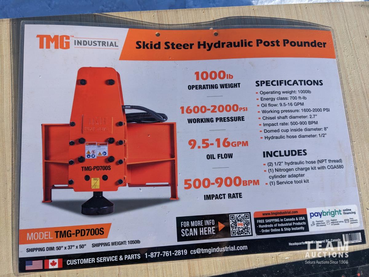 332 TMG Industrial PD700S Hydraulic Post Pounder - Skid Steer Attachment (Unused)