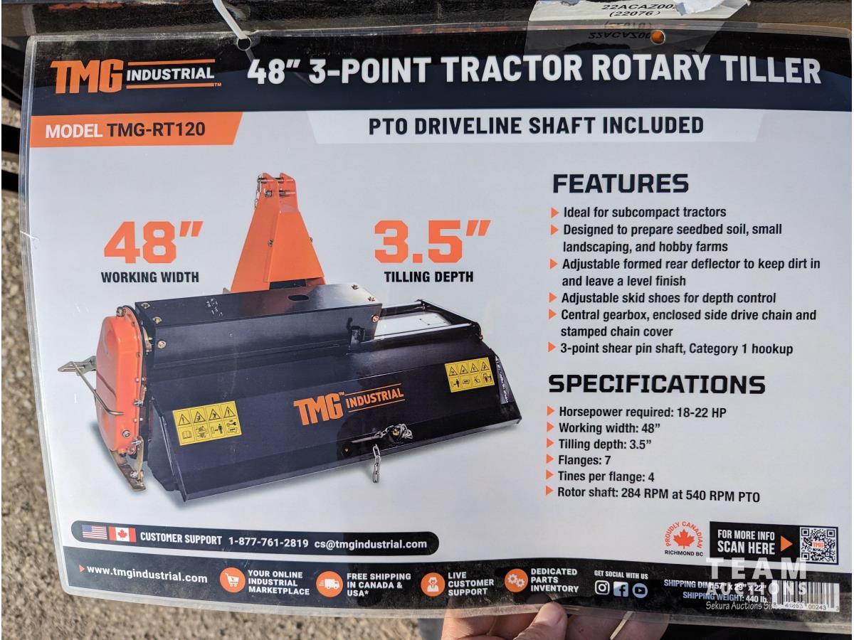 356 TMG Industrial RT120 48 Inch 3-Point Hitch Rotary Tiller (Unused)