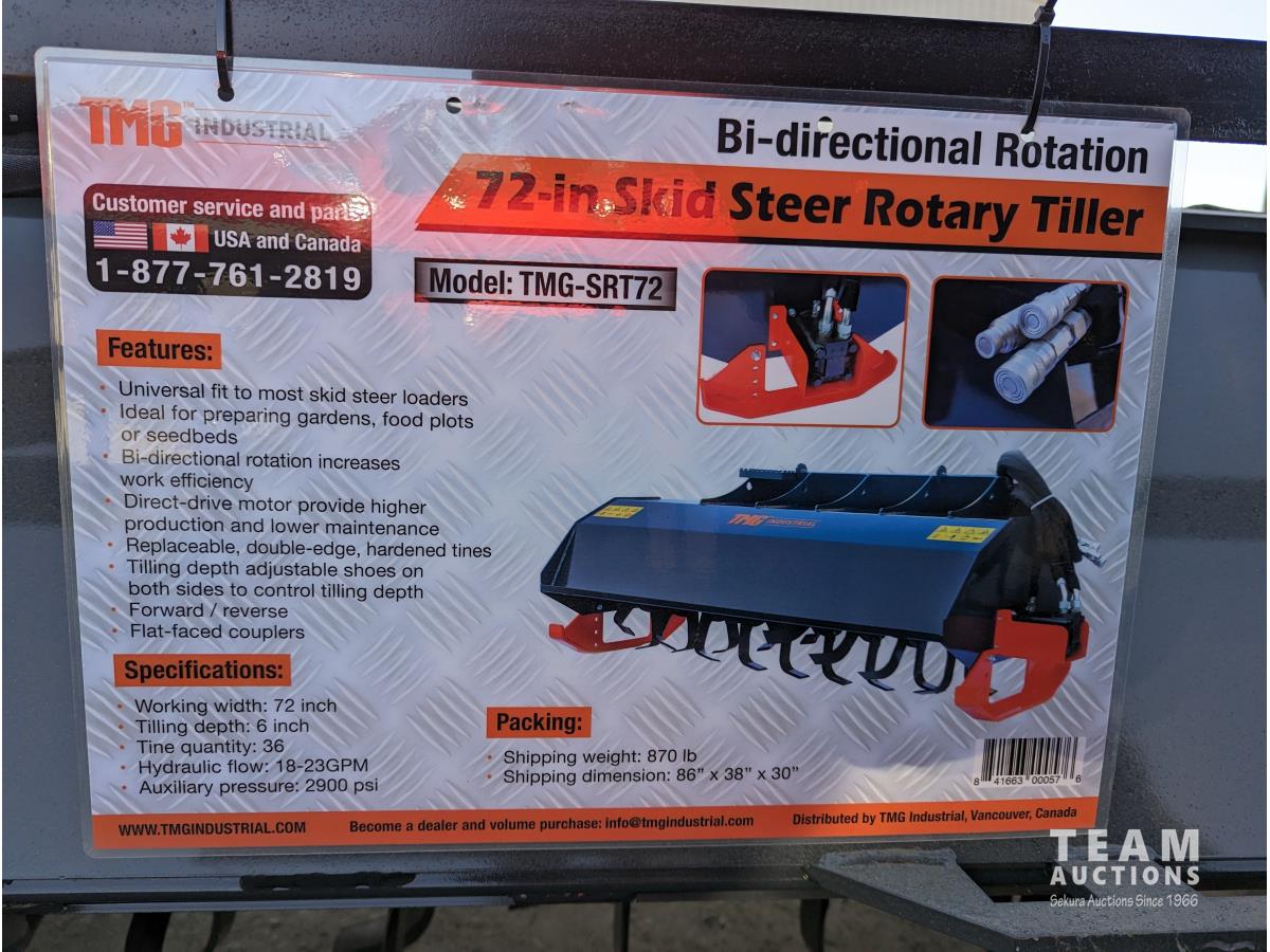 323 TMG Industrial SRT72 72 Inch Rotary Tiller - Skid Steer Attachment (Unused)
