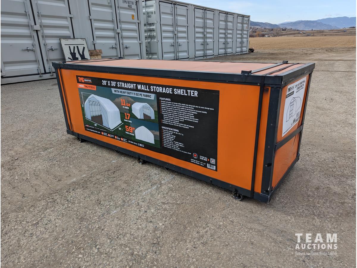 203 TMG Industrial ST2031E 20 Ft X 30 Ft Straight Wall Peak Ceiling Storage Shelter (Unused)