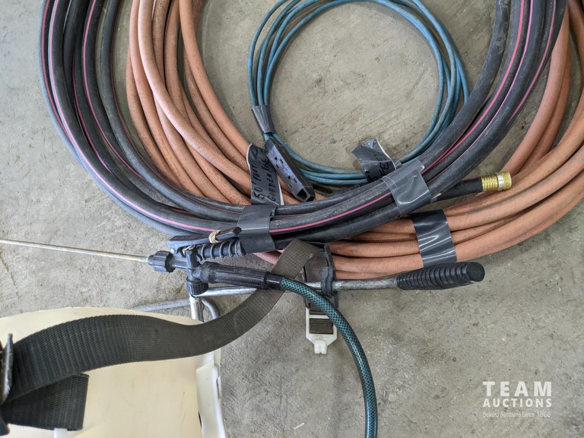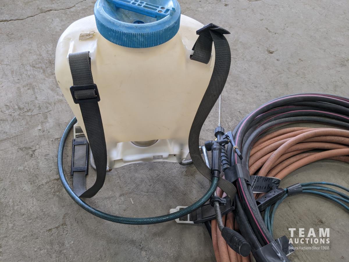 1171 Backpack Sprayer and (2) Garden Hoses