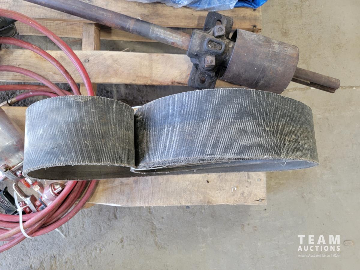 30 x 40 blue tarp (new), (2) air paint sprayers and saw mandrel with belt