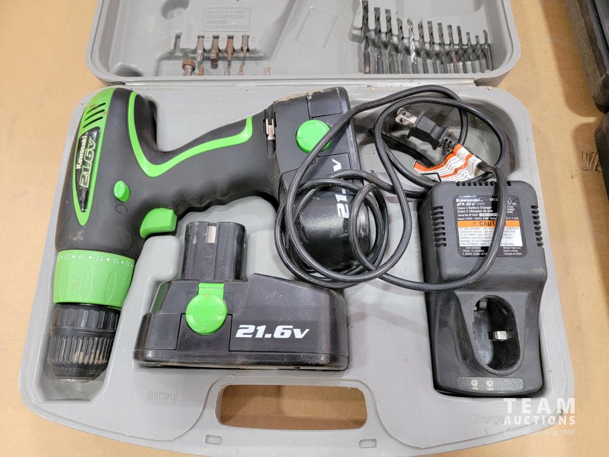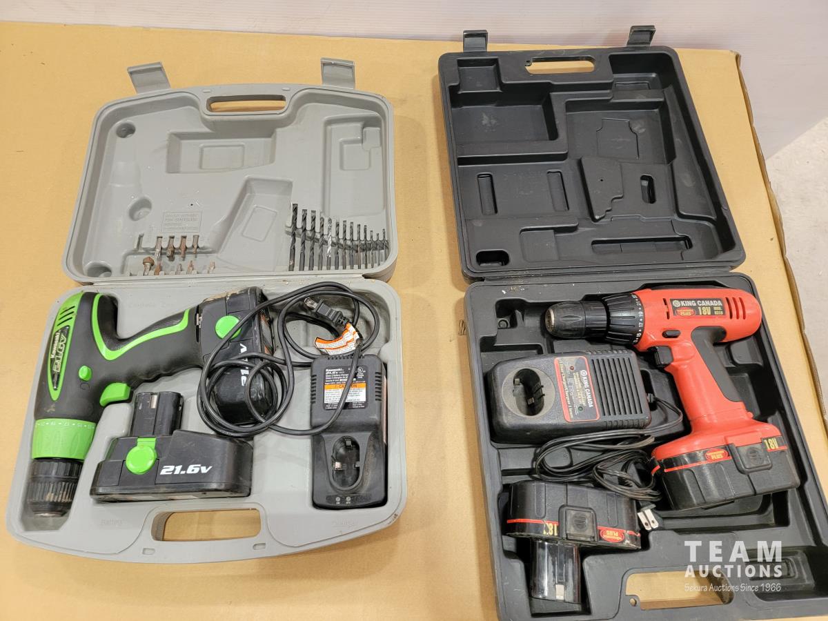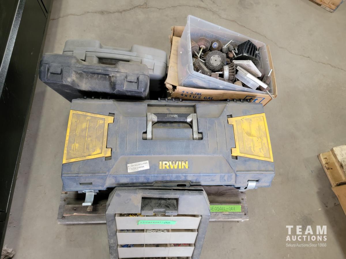 Wire wheel brushes, (2) cordless drills, clamps, staples