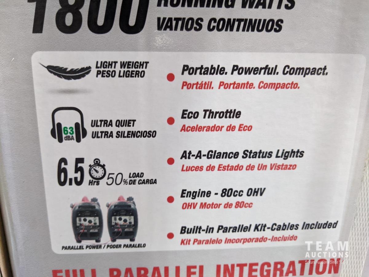 1800 running watts, 80cc, 4 cycle, OHV engine