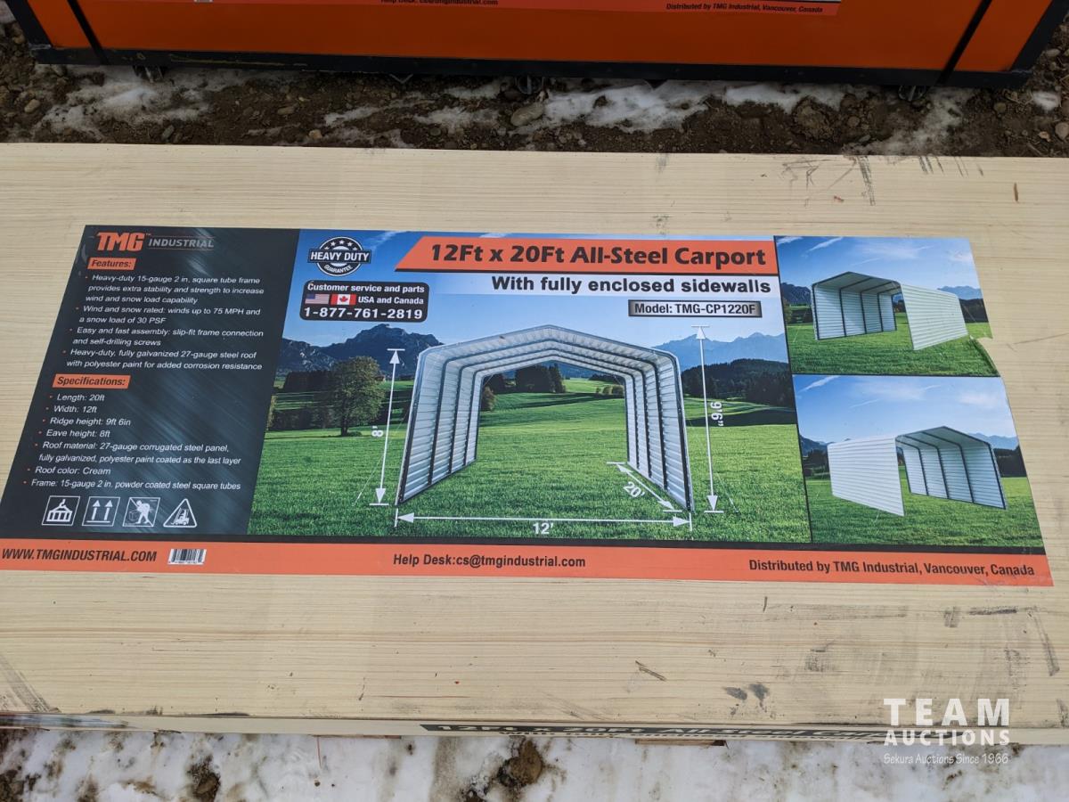 2562 TMG Industrial 12 Ft X 20 Ft Metal Shed Carport (Unused)