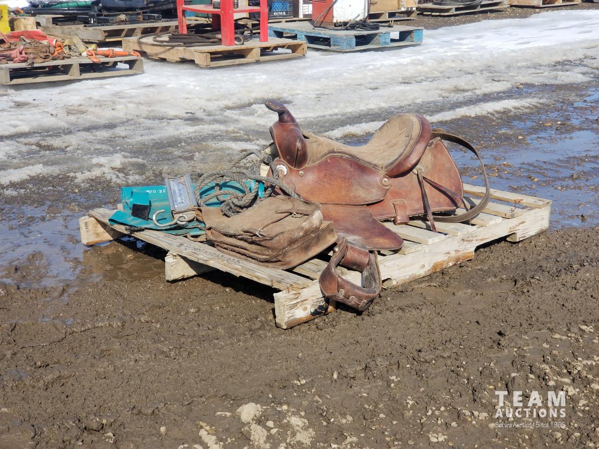 22 14 Inch Western Saddle C/W Saddle Bag and Hanging Scale