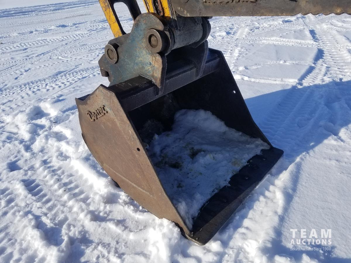 Cummins B 5.7 L diesel engine, 2 speed high/low transmission, rexroff hydraulic pumps, 44 inch dig bucket, rexroff brakes, 98 inch dozer, hydraulic outriggers, 6 ft medium stick, aux hydraulics, 10.00R20 tires