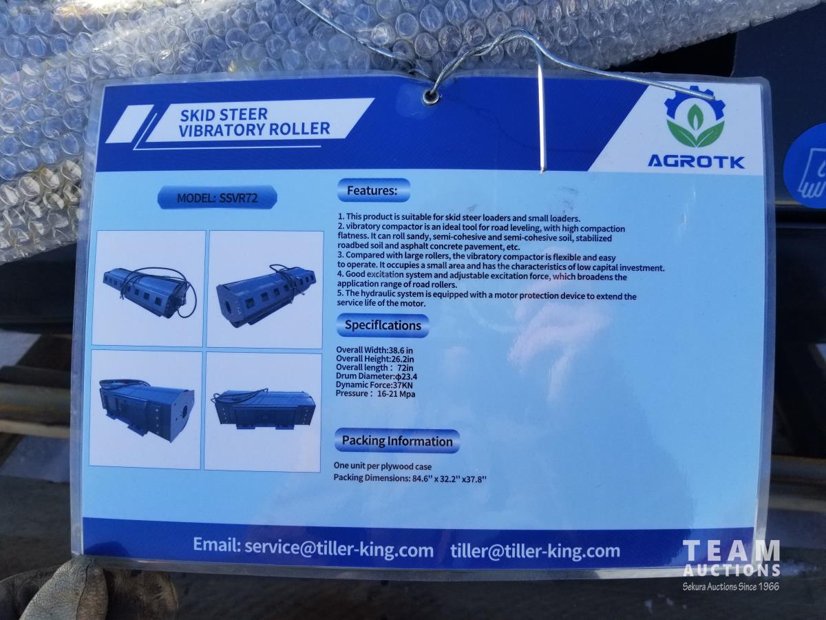 252 AGROTK SSVR72 72 Inch Skid Steer Vibratory Roller - Skid Steer Attachment (Unused)