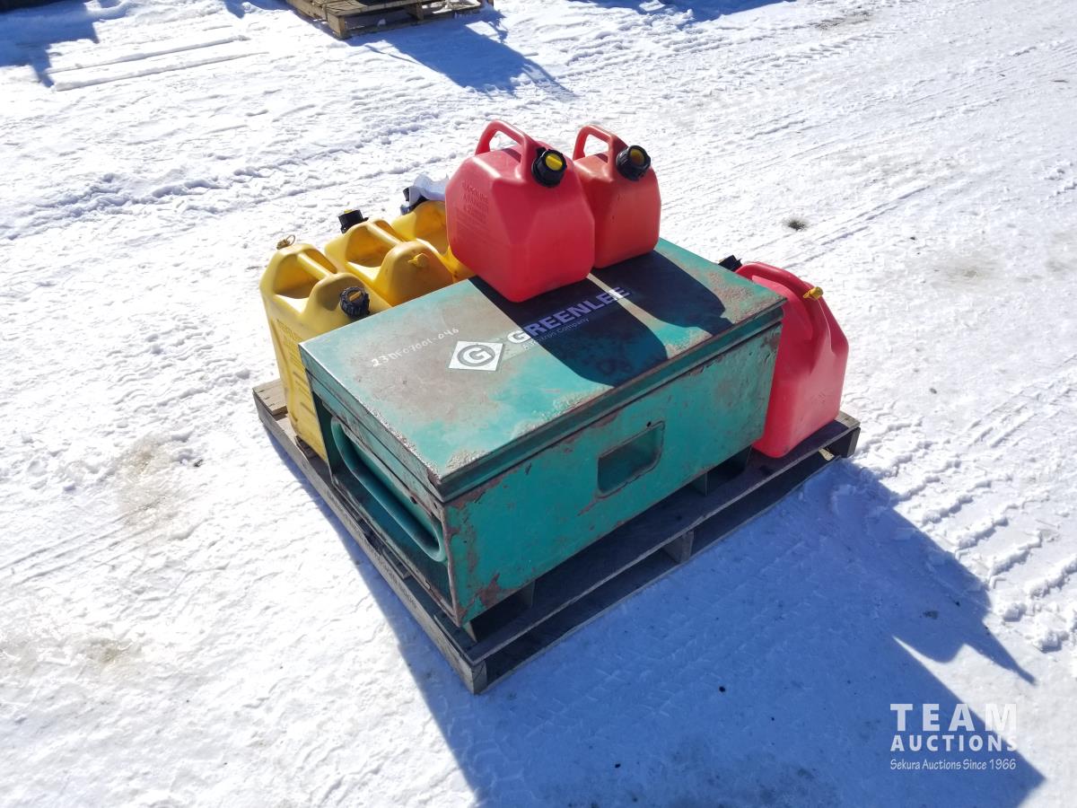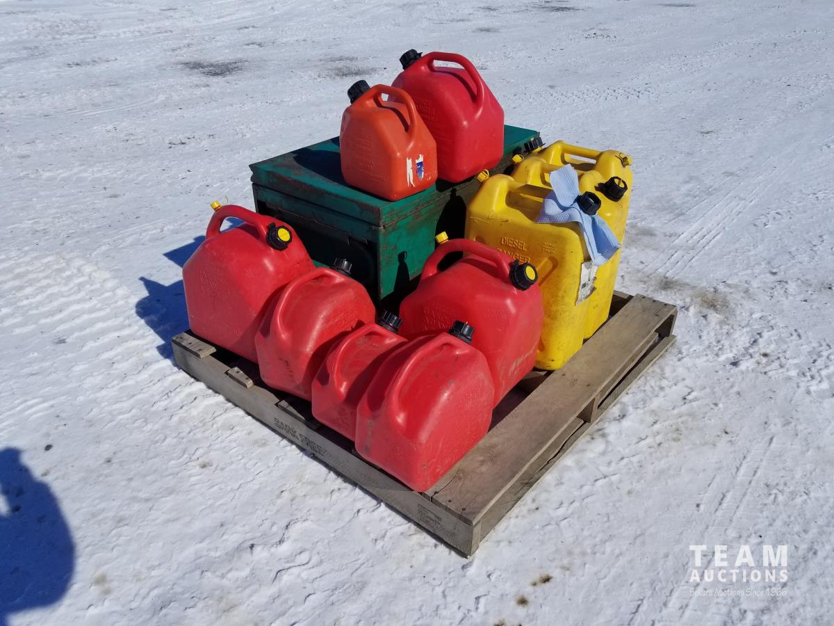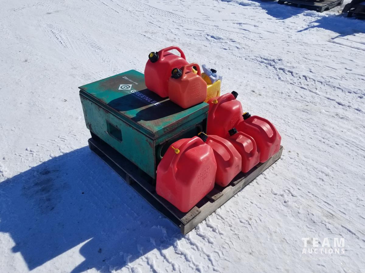 137 Assortment Of Jerry Cans And Tool Storage Box