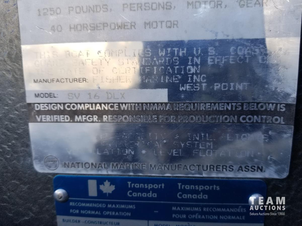 201 Fisher SV-16 DLX 16 Ft 4 Person Fishing Boat w/ 1988 Boat Trailer