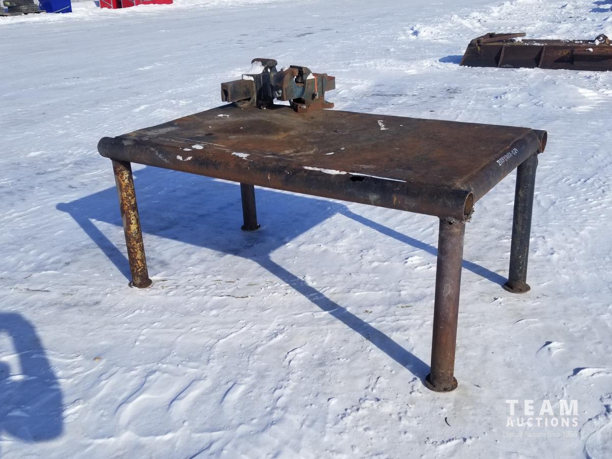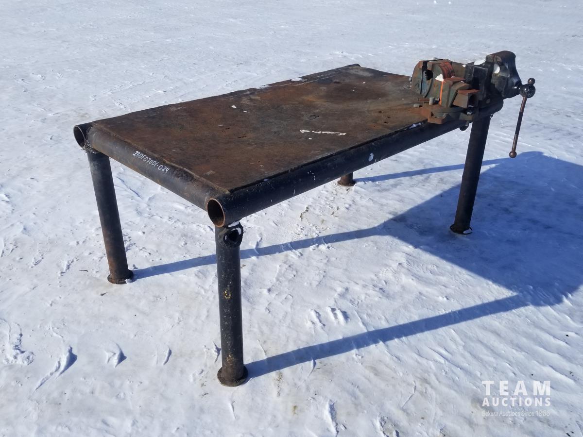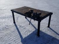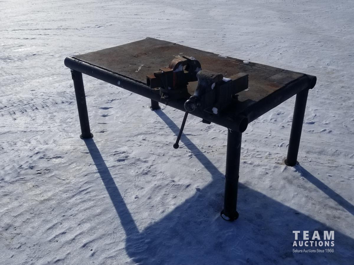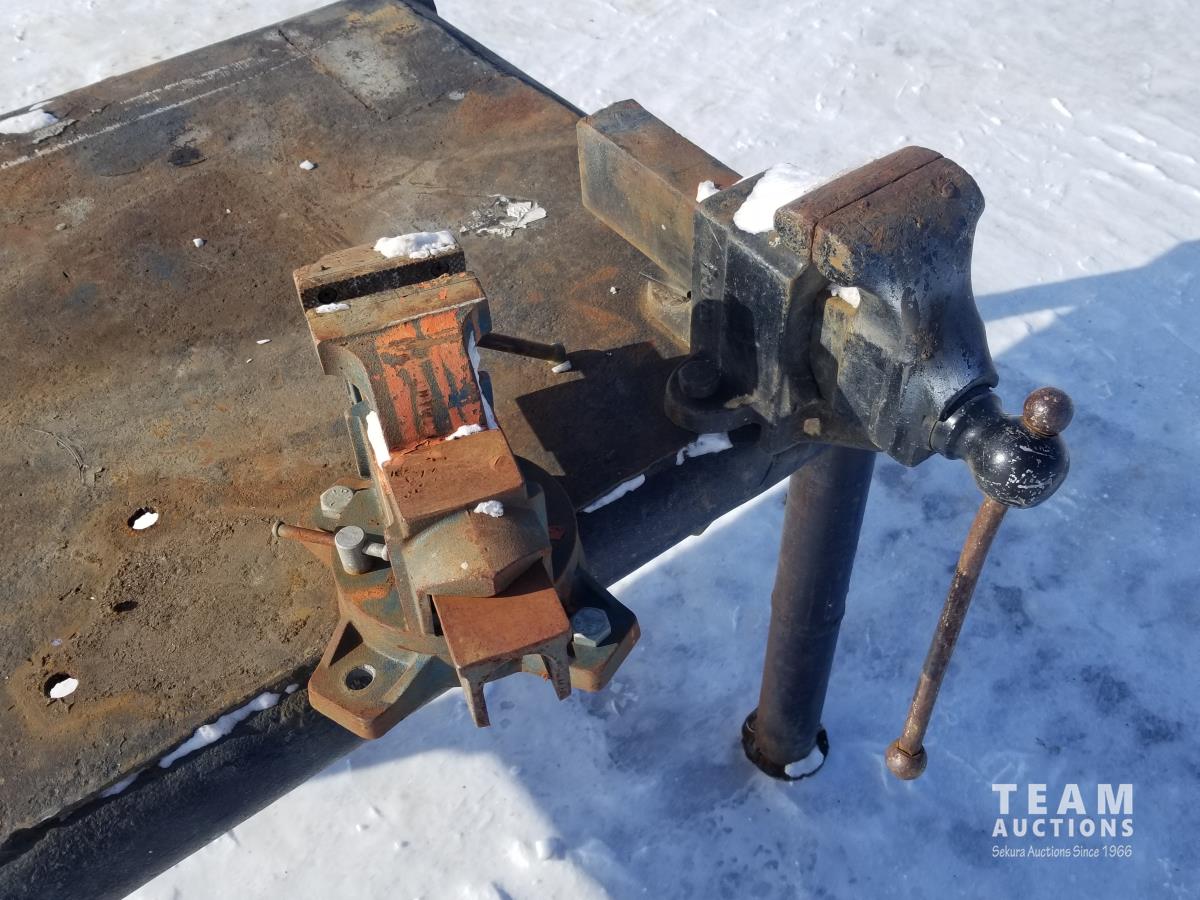 34 Inch wide, 64 Inch long, 2 attached bench vices