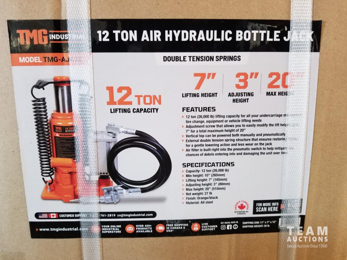 158 TMG Industrial TMG-AJA12 12 Ton Air Hydraulic Bottle Jack (Unused)