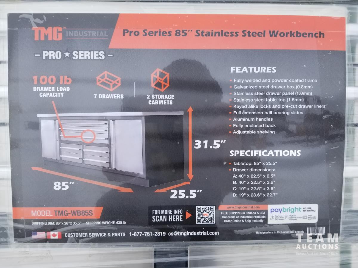 44 TMG Industrial TMG-WB85S 85 Inch Stainless Steel Workbench (Unused)