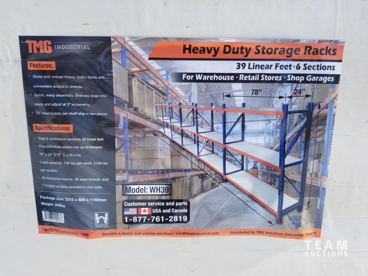 45 TMG Industrial TMG-WH39 39 Ft Metal Garage/Workshop Storage Shelves (Unused)