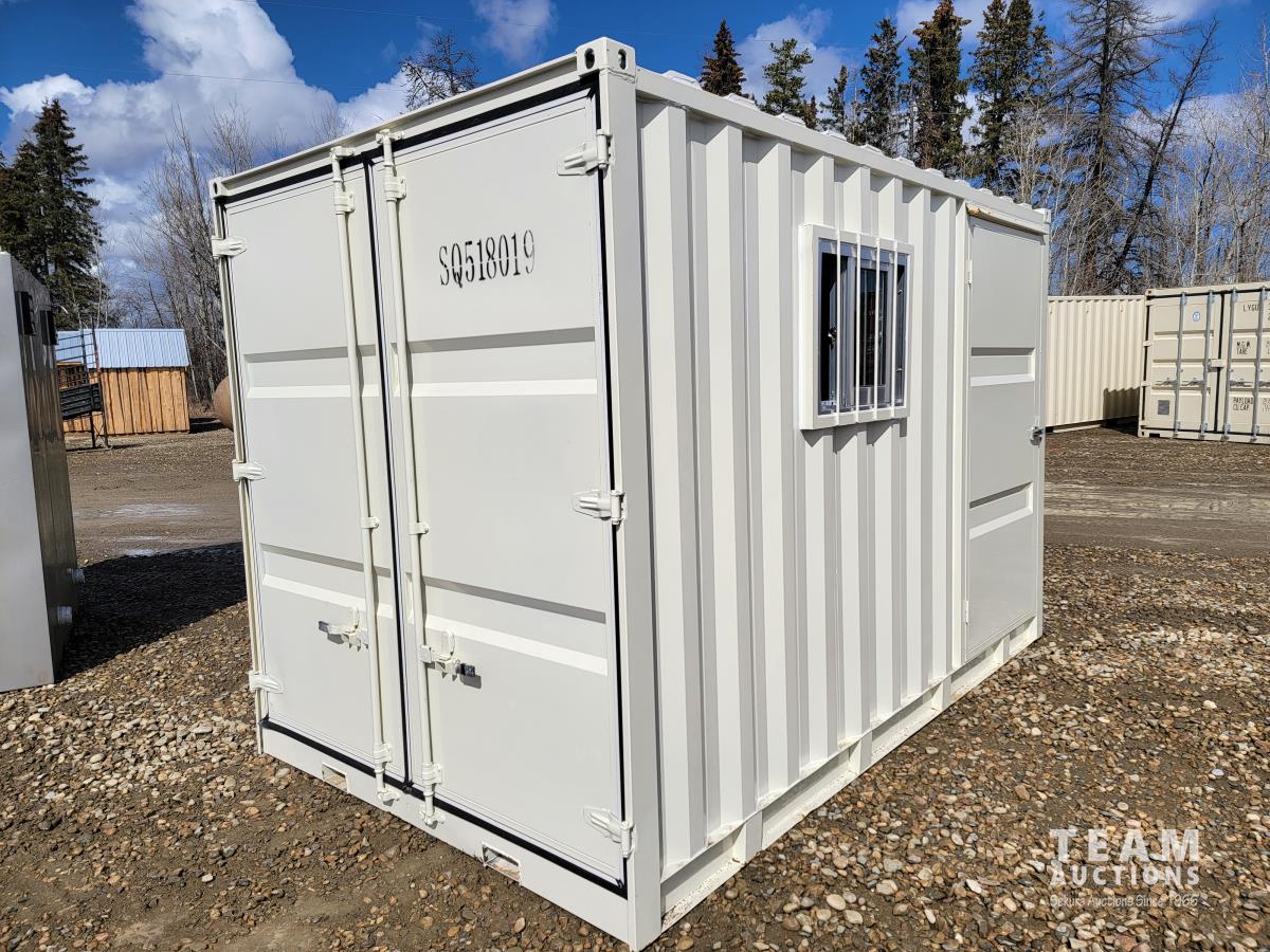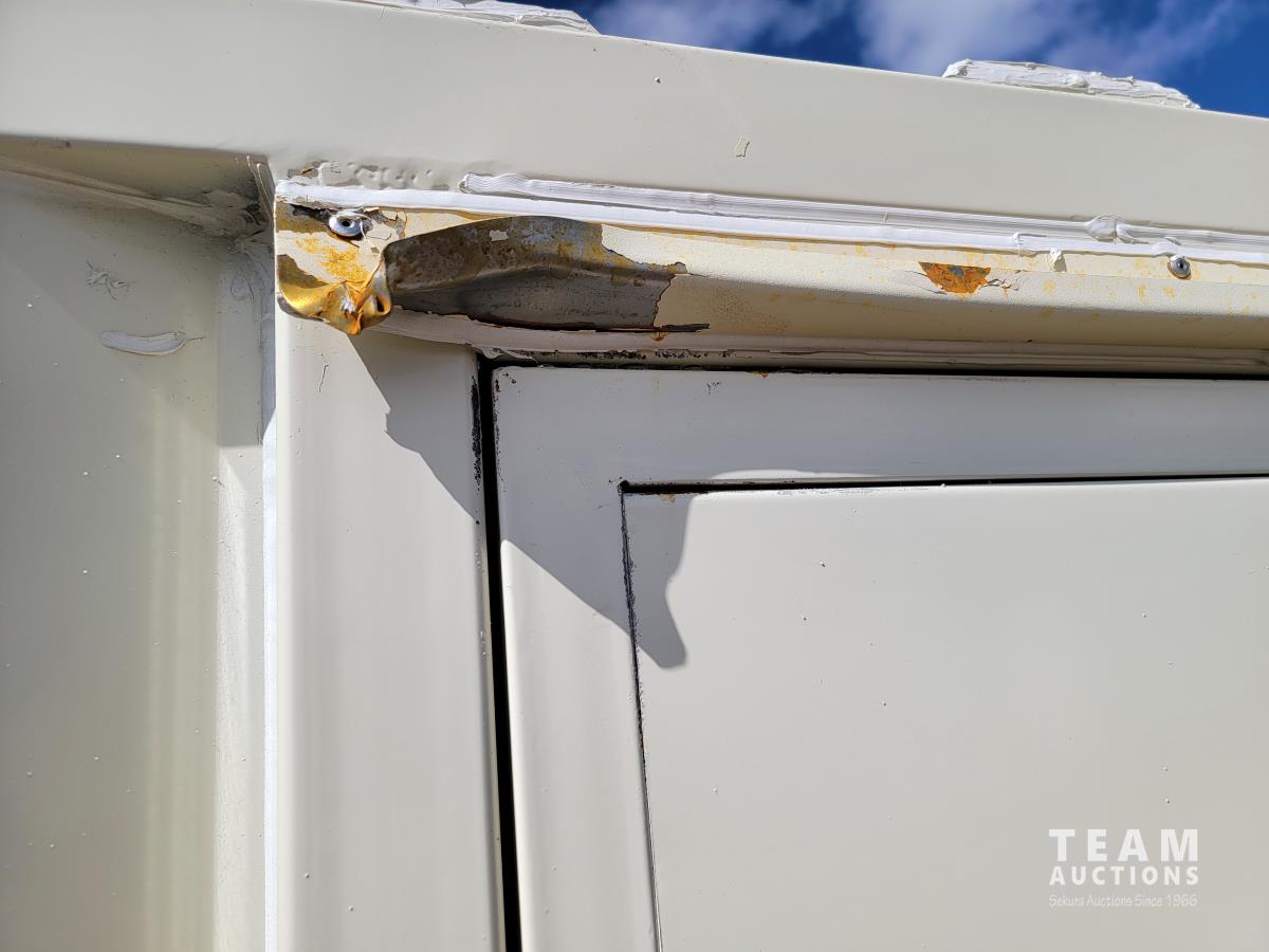 85.5 inch w x 141.5 inch d x 94.5 inch h, window, man door, end doors