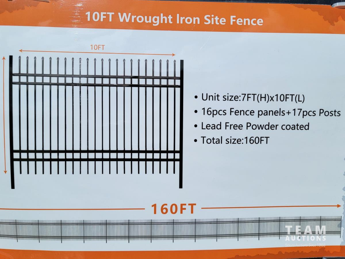 126 (16) 10 Ft X 7 Ft Wrought Iron Fence Panels (Unused)