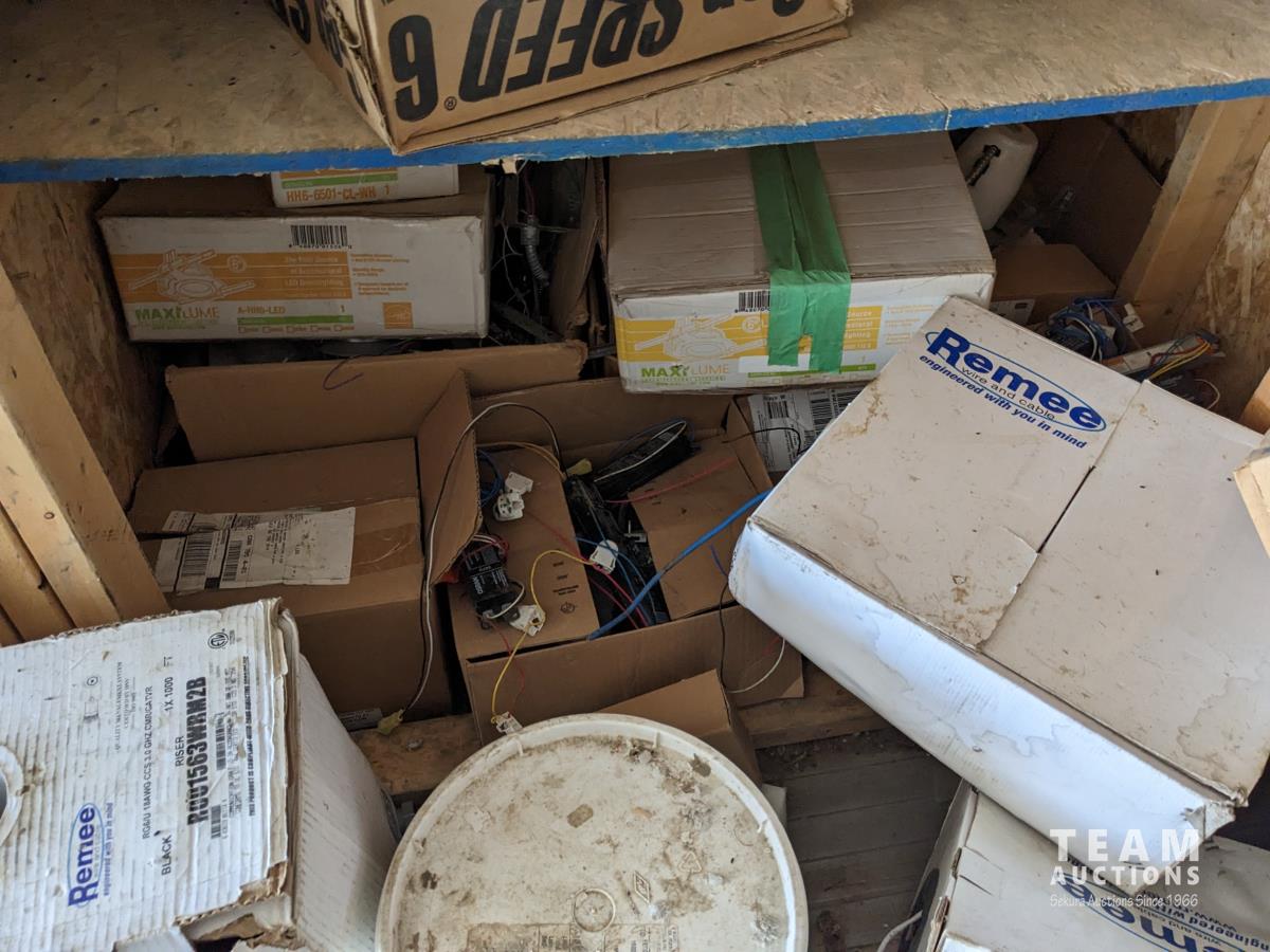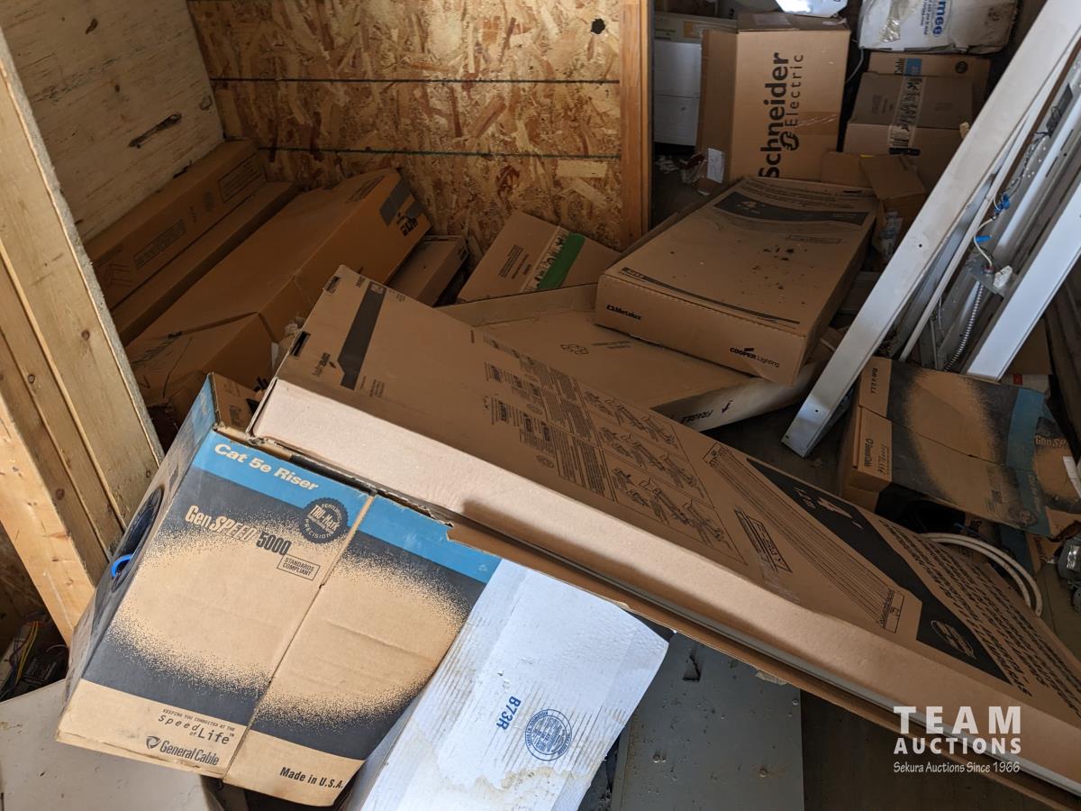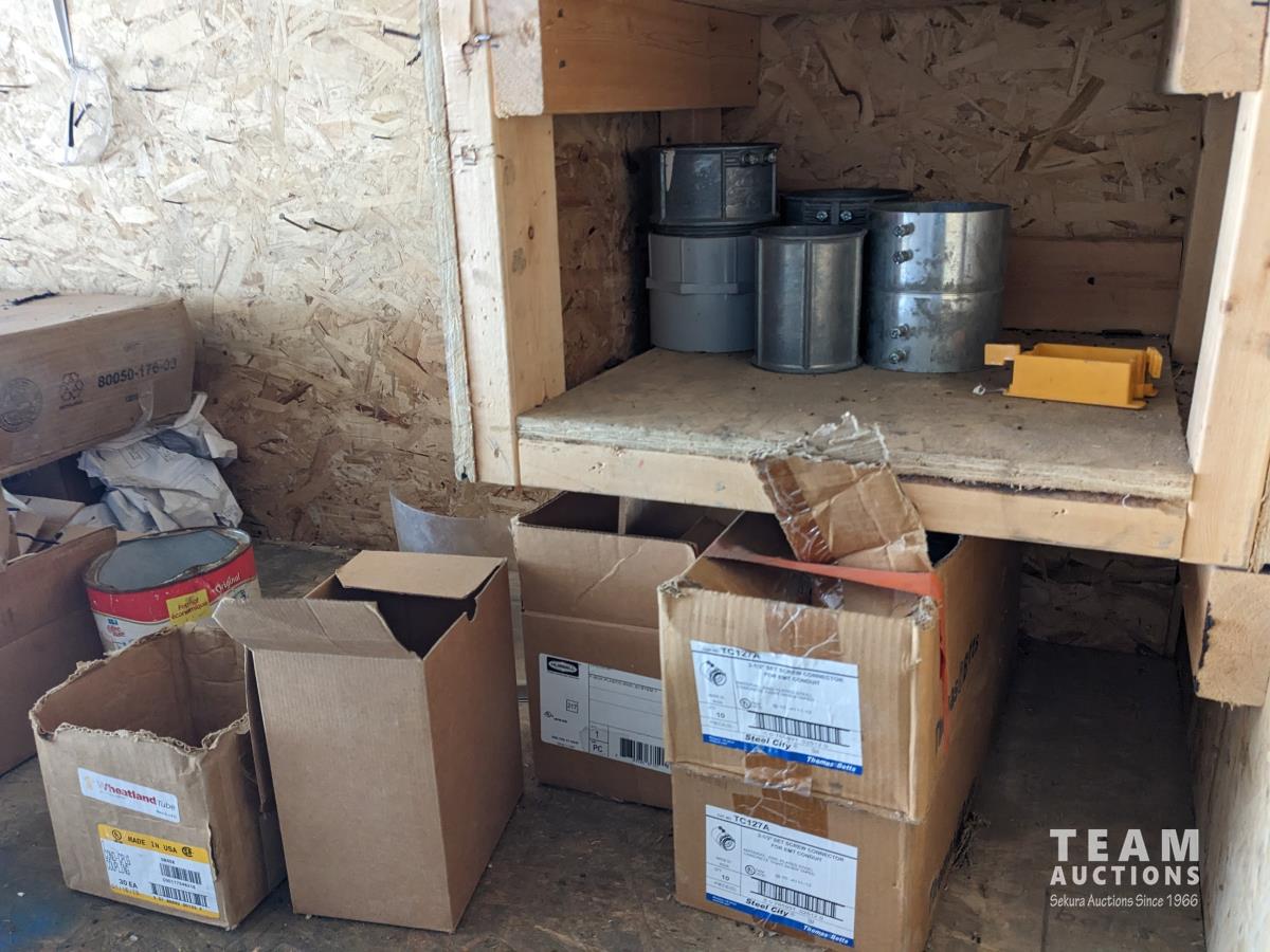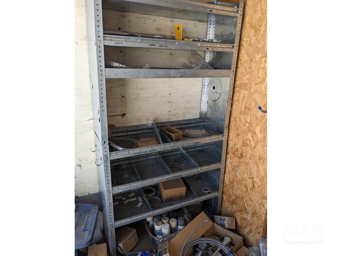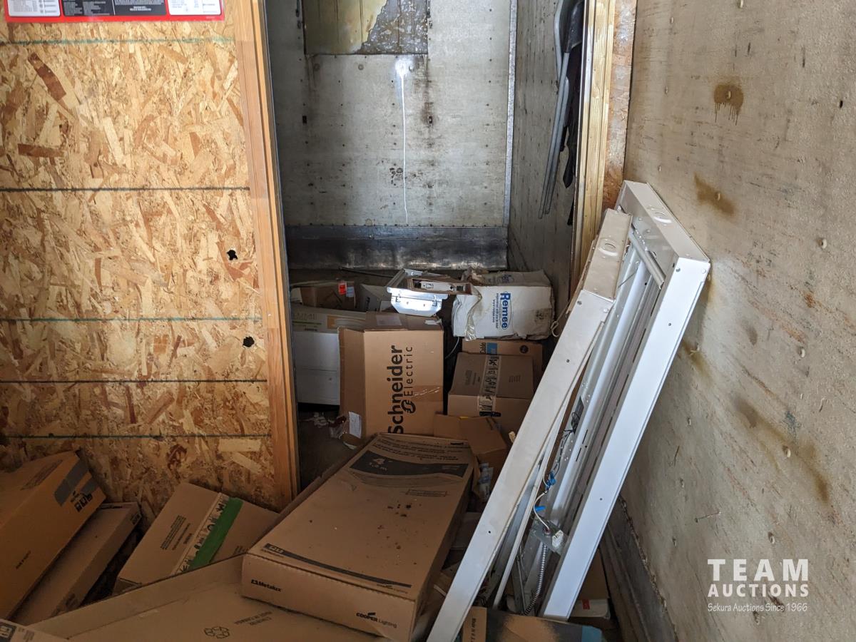 rear roll up door, air brakes, spring suspension, oil bath bearings, sells with misc electrical supplies inside van, 11R24.5 tires
