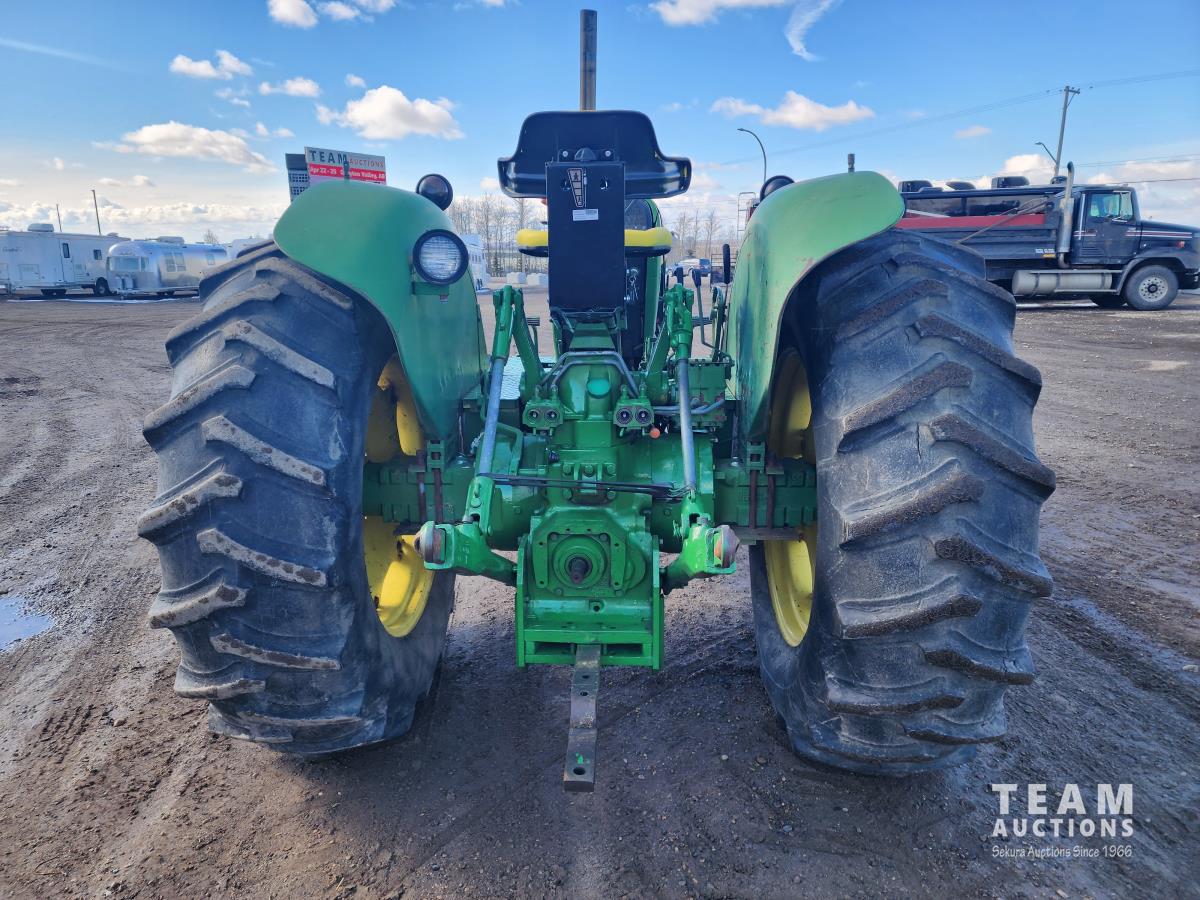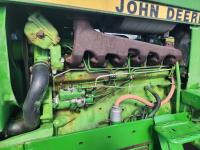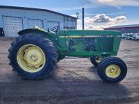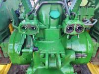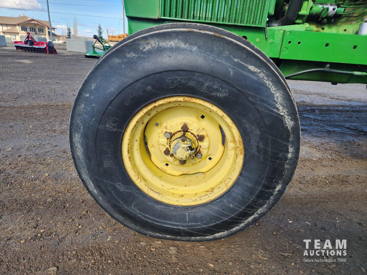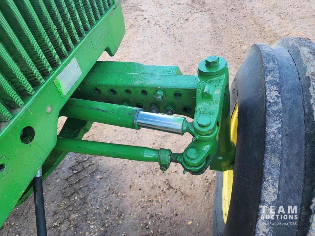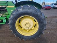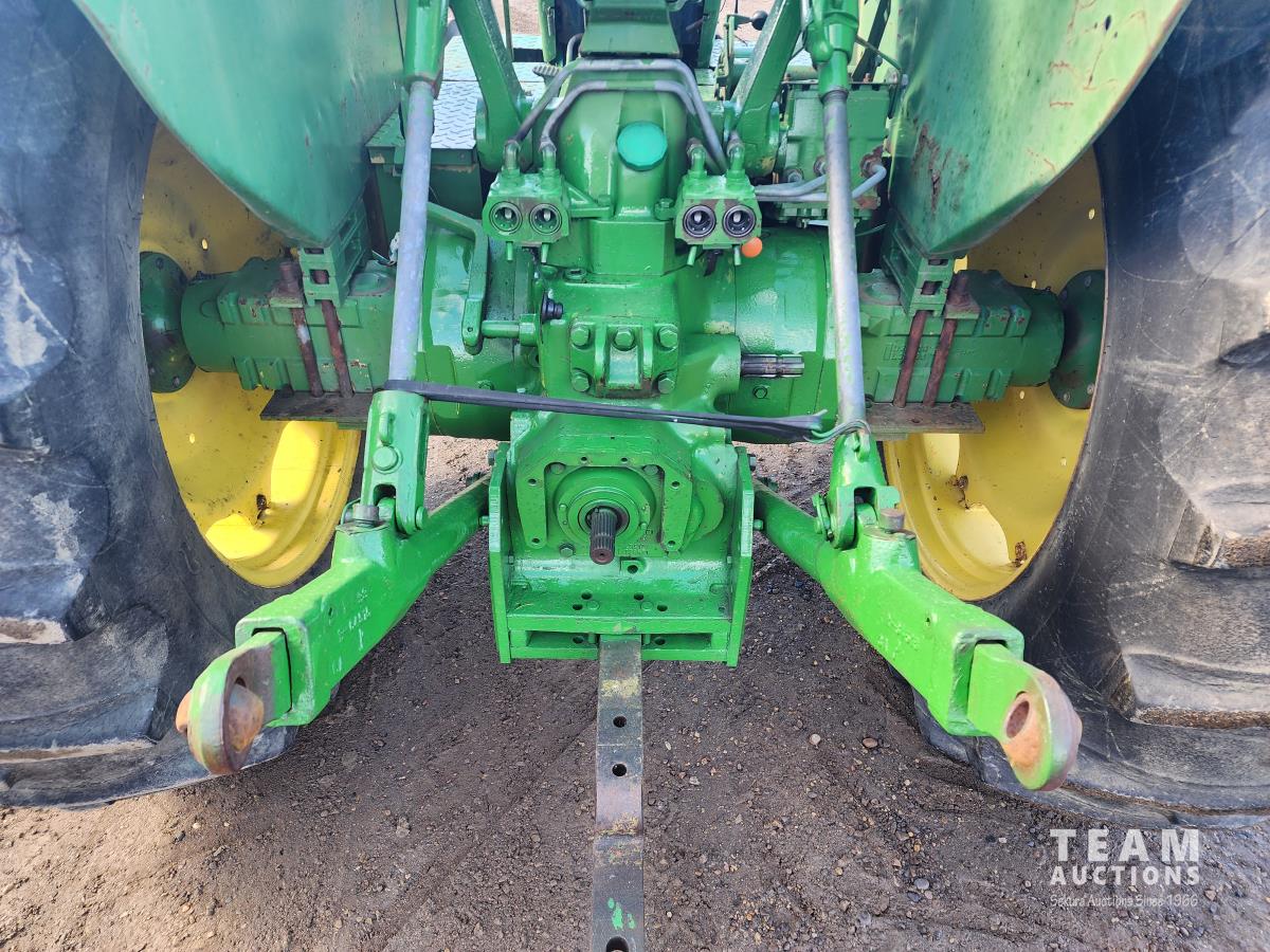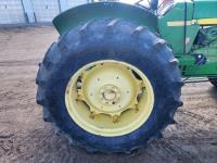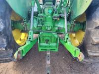 John Deere 5.9 L 6 cylinder engine, 16 speed Power Syncron partial power shift transmission, open station platform, 540/1000 PTO, 3 point hitch, 2 rear hydraulic outlets, 10.00-16 front tires, 18.4-34 rear tires