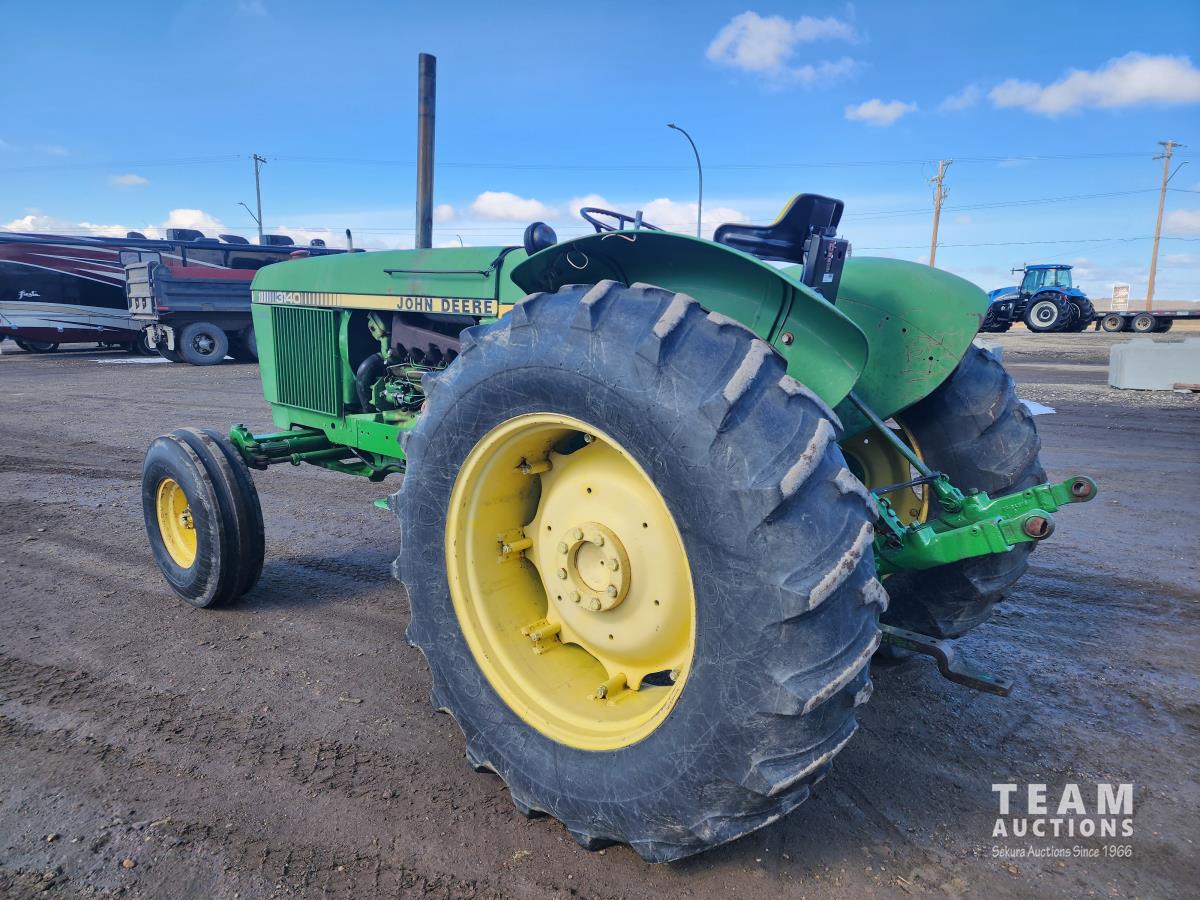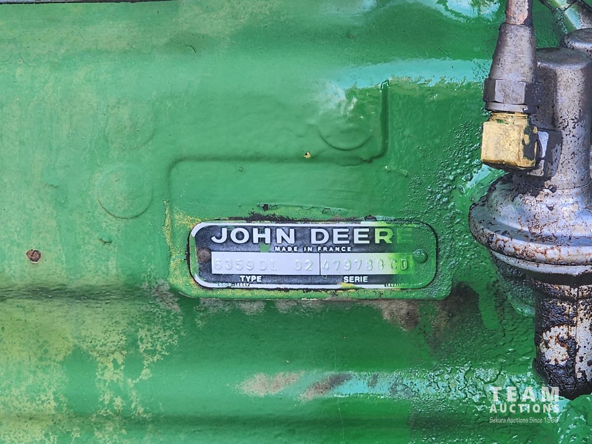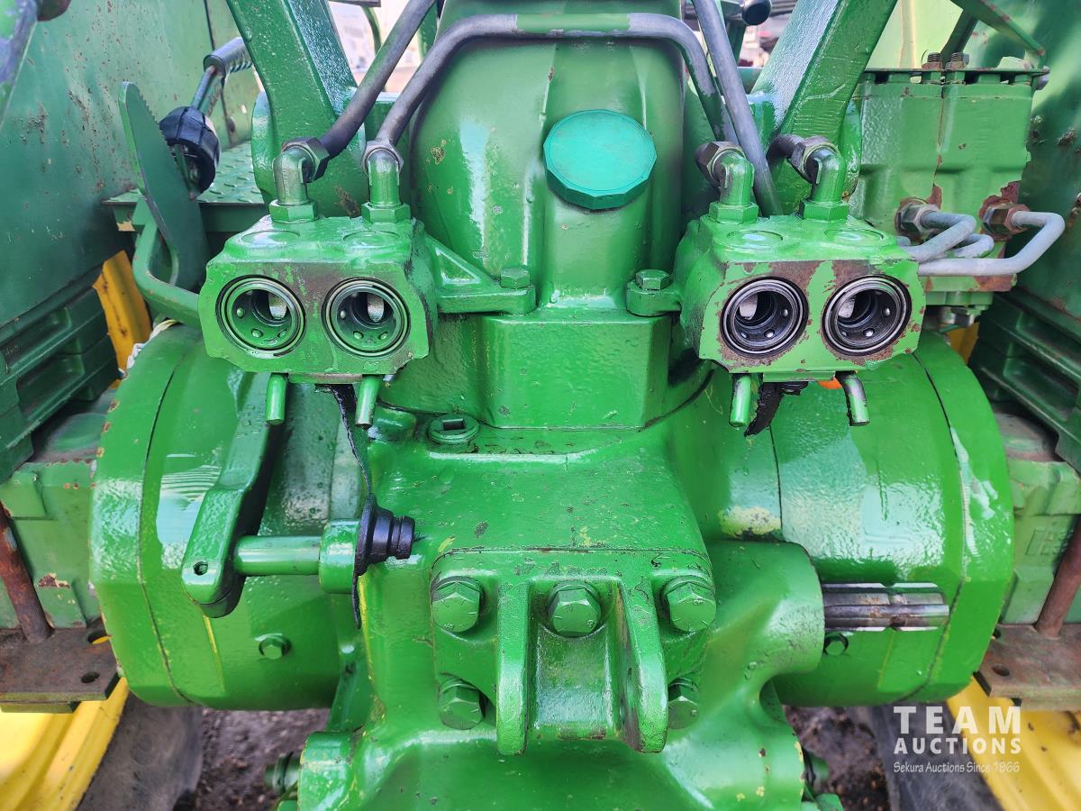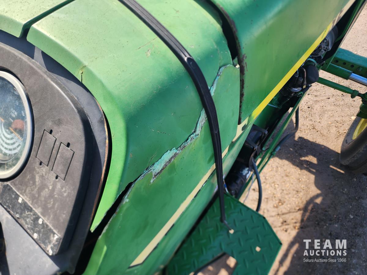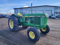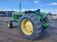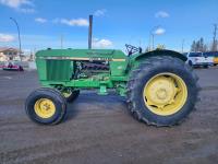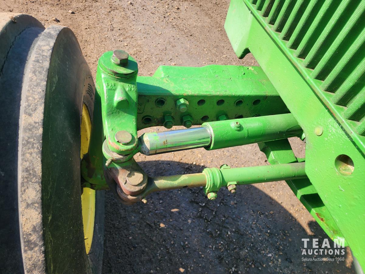 John Deere 5.9 L 6 cylinder engine, 16 speed Power Syncron partial power shift transmission, open station platform, 540/1000 PTO, 3 point hitch, 2 rear hydraulic outlets, 10.00-16 front tires, 18.4-34 rear tires
