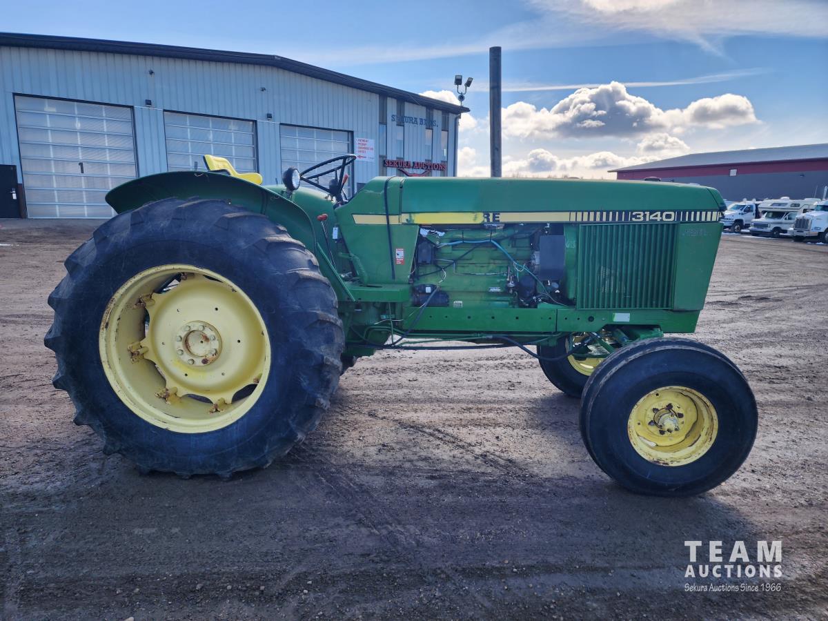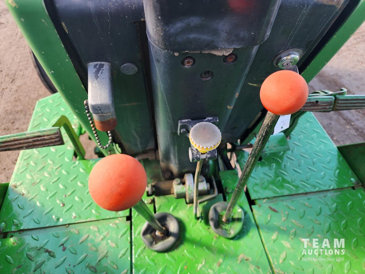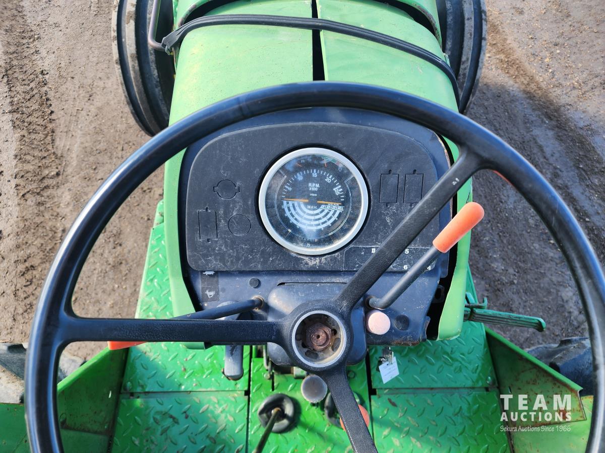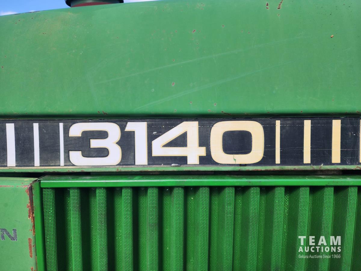 John Deere 5.9 L 6 cylinder engine, 16 speed Power Syncron partial power shift transmission, open station platform, 540/1000 PTO, 3 point hitch, 2 rear hydraulic outlets, 10.00-16 front tires, 18.4-34 rear tires