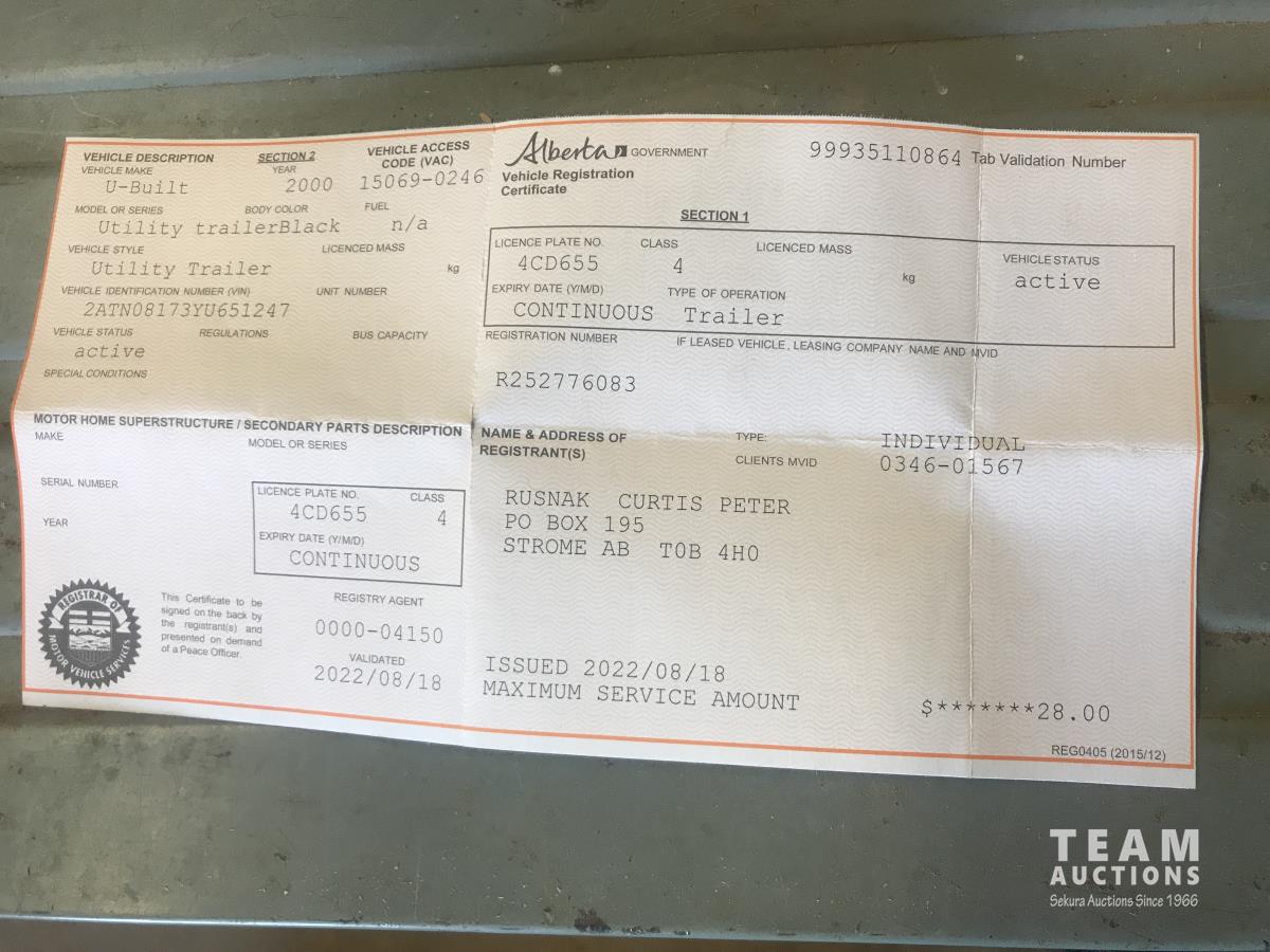 202 2000 U-Built 12 Ft Flat Deck Utility Trailer